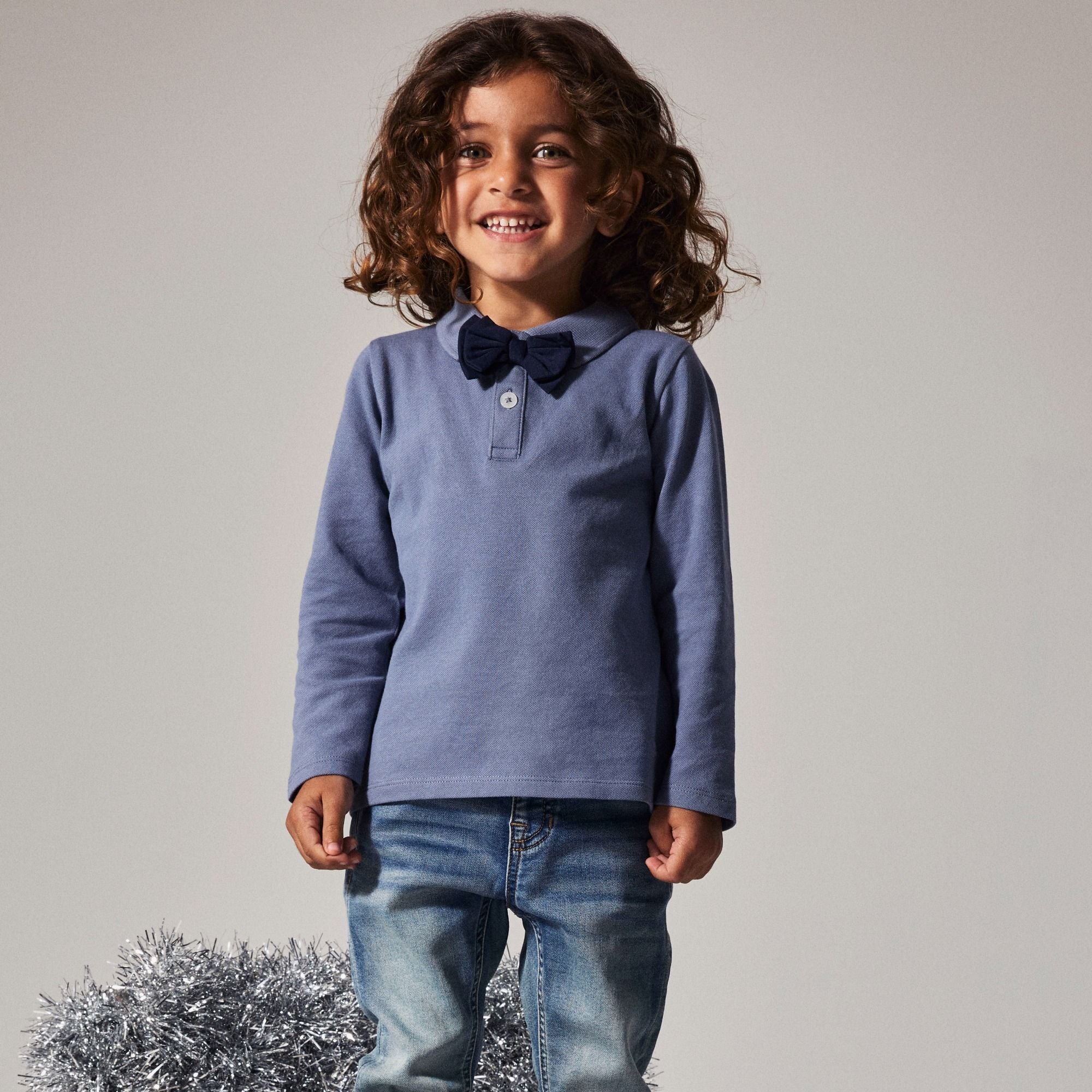 Kinder Langarm-Poloshirt mit Fliege aus Bio-Baumwolle