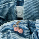 Die Jeans ist vollflächig mit kleinen zauberhaften Kirschen bestickt.