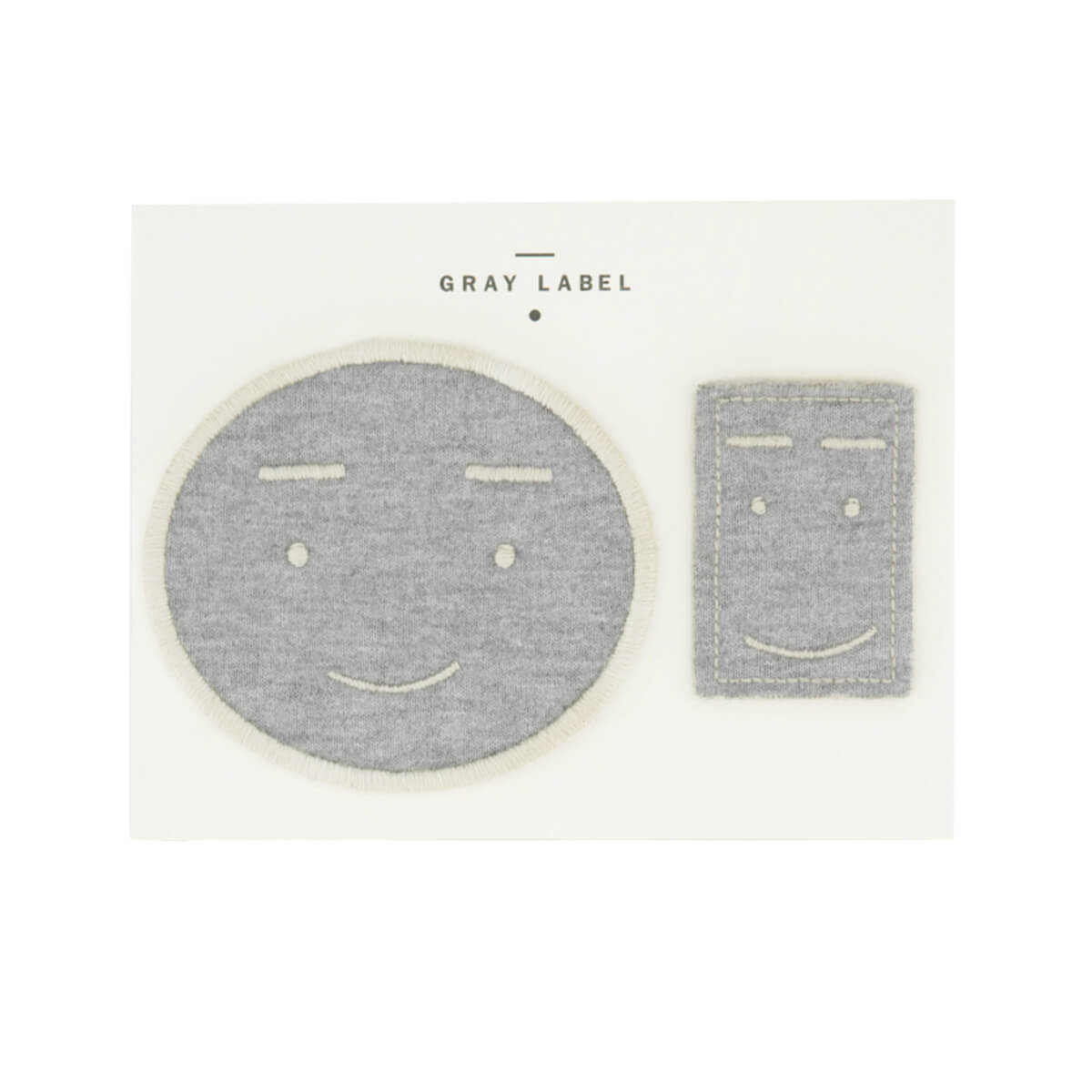 Ein Satz von zwei Aufnähern, die aus Resten unserer Produktion hergestellt wurden, um unseren Abfall zu reduzieren. Die Aufnäher können aufgenäht werden, um Ihre Kleidungsstücke zu reparieren oder zu individualisieren. Die Aufnäher sind mit unserem Logo als Smiley bestickt.