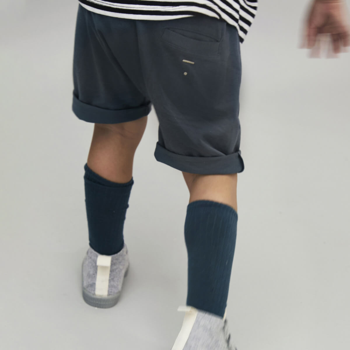 Die Shorts ist aus einem weichen Bio-Baumwoll-Jersey gefertigt. Sie haben einen tieferen Schritt und eine Gesäßtasche auf der rechten Seite. Der elastische Bund ist aus Rippstrick mit einem verstellbaren Fischgräten-Kordelzug gemacht. Ein Gray Lable Logo ist direkt über der Gesäßtasche aufgestickt.