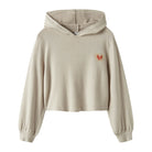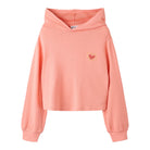 Der Teens Crop Hoodie aus weicher Viskose sorgt für angenehmen Tragekomfort und stylische Looks. Eine süße Herzstickerei auf der Brust setzt einen charmanten Akzent. Der kurze Schnitt macht den Hoodie perfekt für lässige Outfits und trendige Layerings.