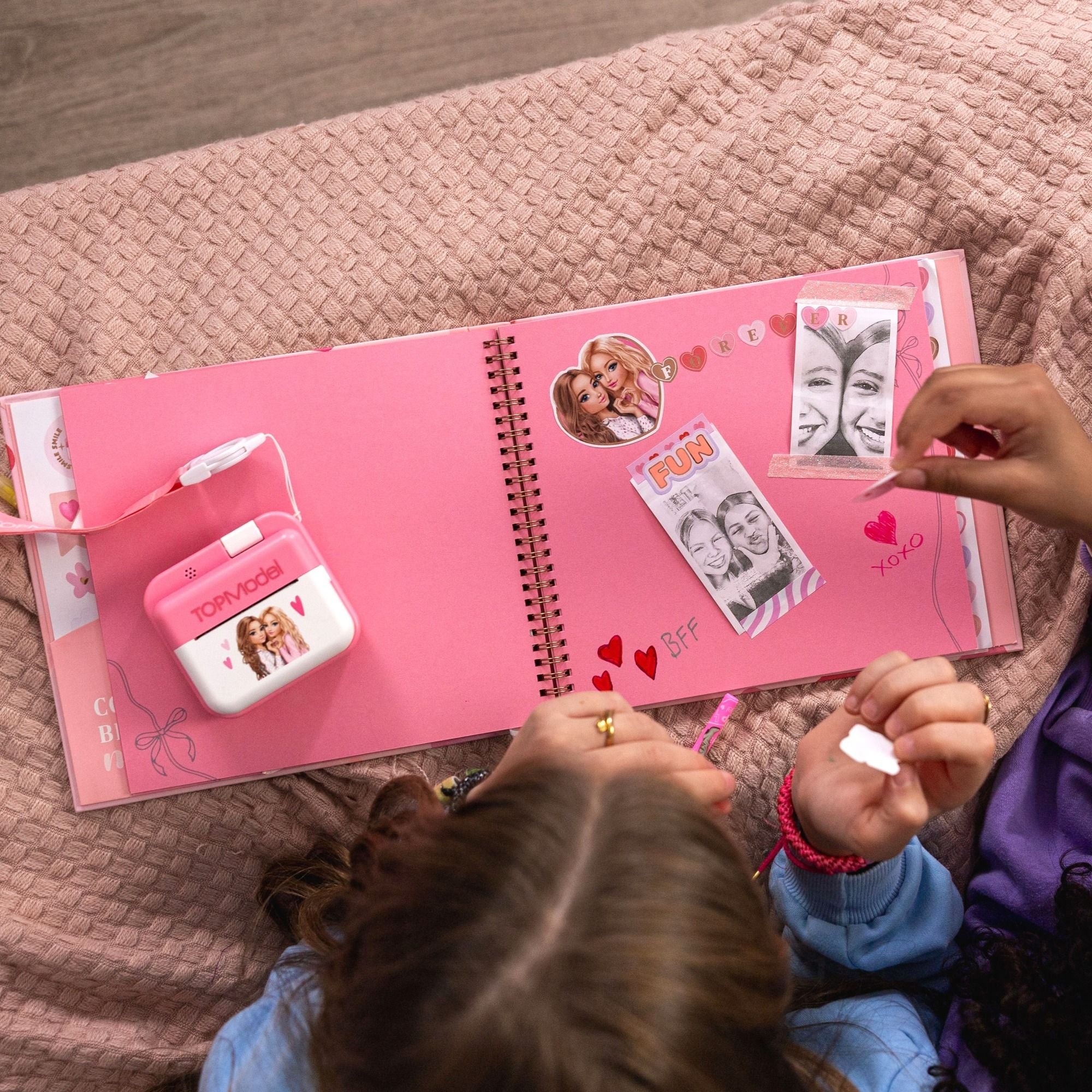 Für die schönsten Fotos. Das TOPModel-Fotoalbum verfügt über 32 freie rosa Seiten aus spiralgebundener Kartonage und bietet viel Platz für eingeklebte Erinnerungen. Mit dabei sind 6 Stickerbögen mit insgesamt 340 Stickern zum kreativen Dekorieren sowie tolle Gestaltungsideen zur Inspiration. Das Fotobuch passt perfekt zur Printkamera und zum DIY Frame Book von TOPModel.