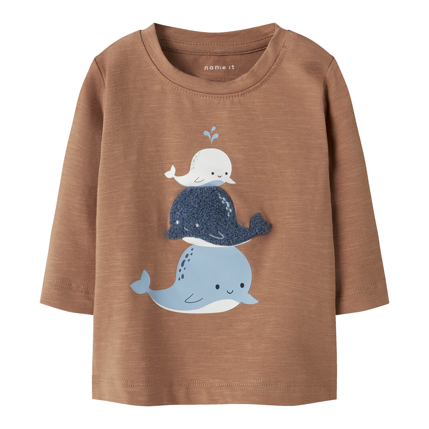 Der Rundhalsausschnitt und die langen Ärmel machen das Modell zu einer schönen Wahl für etwas kühlere Tage und bequeme Outfits. Der Druckknopfverschluss an der Schulter erleichtert das An und Ausziehen und ist im Familienalltag besonders praktisch. Das niedliche Wal Motiv auf der Vorderseite sorgt für einen liebevollen Blickfang und macht das Oberteil zu einem richtig süßen Lieblingsstück.