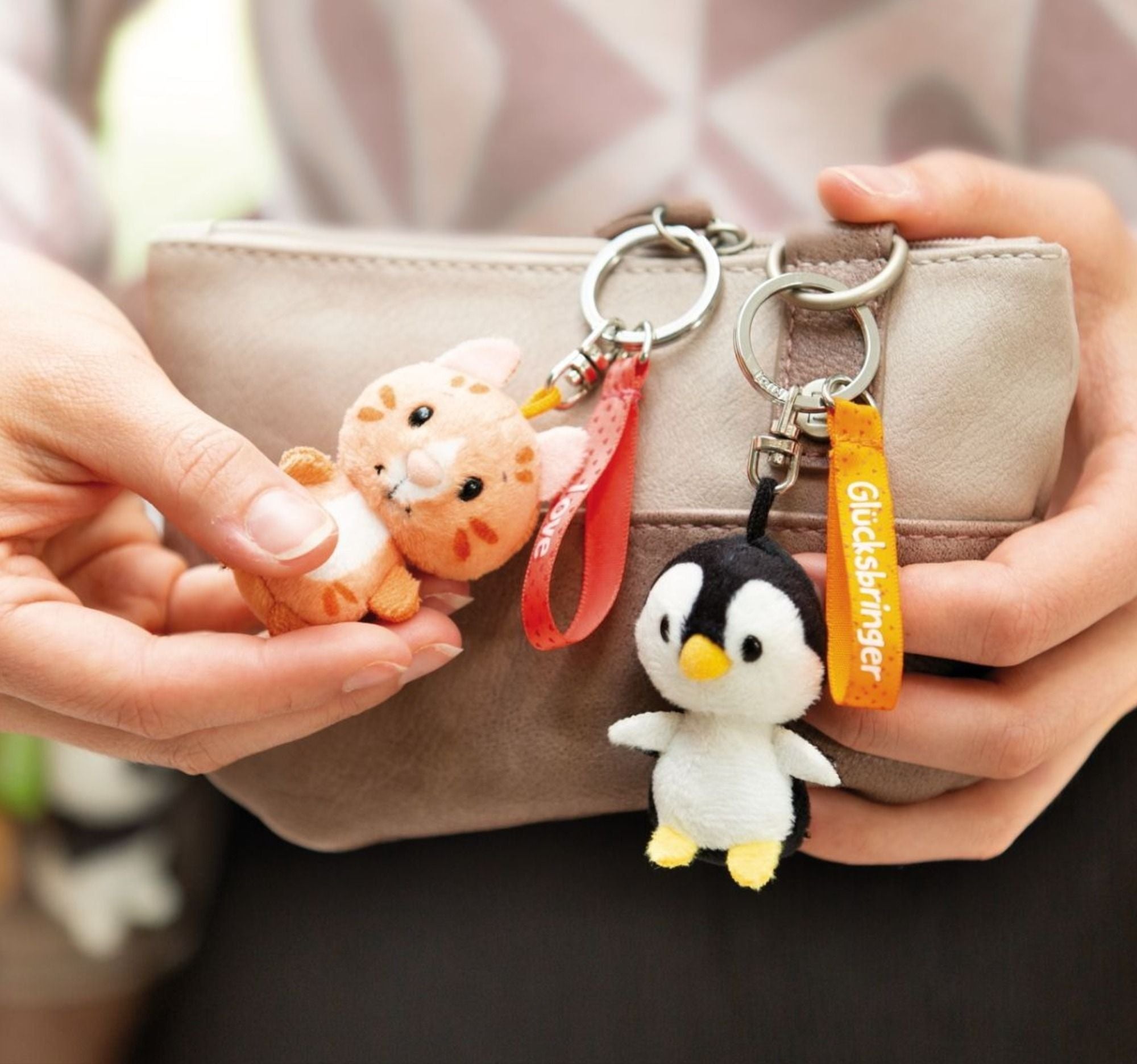 Die Schlüsselanhänger aus flauschigem NICI-Plüsch ist mit seiner handlichen Größe von 5cm eine niedliche und originelle Möglichkeit, dem Schlüsselbund, Rucksack, Tasche oder Schulranzen das gewisse Etwas zu verleihen. Die farbigen Satinbänder mit verschiedenen Aufschriften geben dem Anhänger mit dem stabilen Schlüsselring aus Metall eine besondere Bedeutung und erinnern daran, positiv durch den Tag zu gehen. Mit diesem süßen Accessoire hat man nicht nur die Schlüssel immer griffbereit, sondern trägt auch ein kleines Stückchen Glück stets mit sich. Der Schlüsselanhänger ist Teil der NICI GREEN Produktwelt. Für NICI GREEN Produkte verwenden wir fast ausschließlich Plüsch- und Füllstoffe, die aus recycelten Materialien bestehen. Hierfür werden vor allem recycelte PET-Flaschen zu RPET verarbeitet.