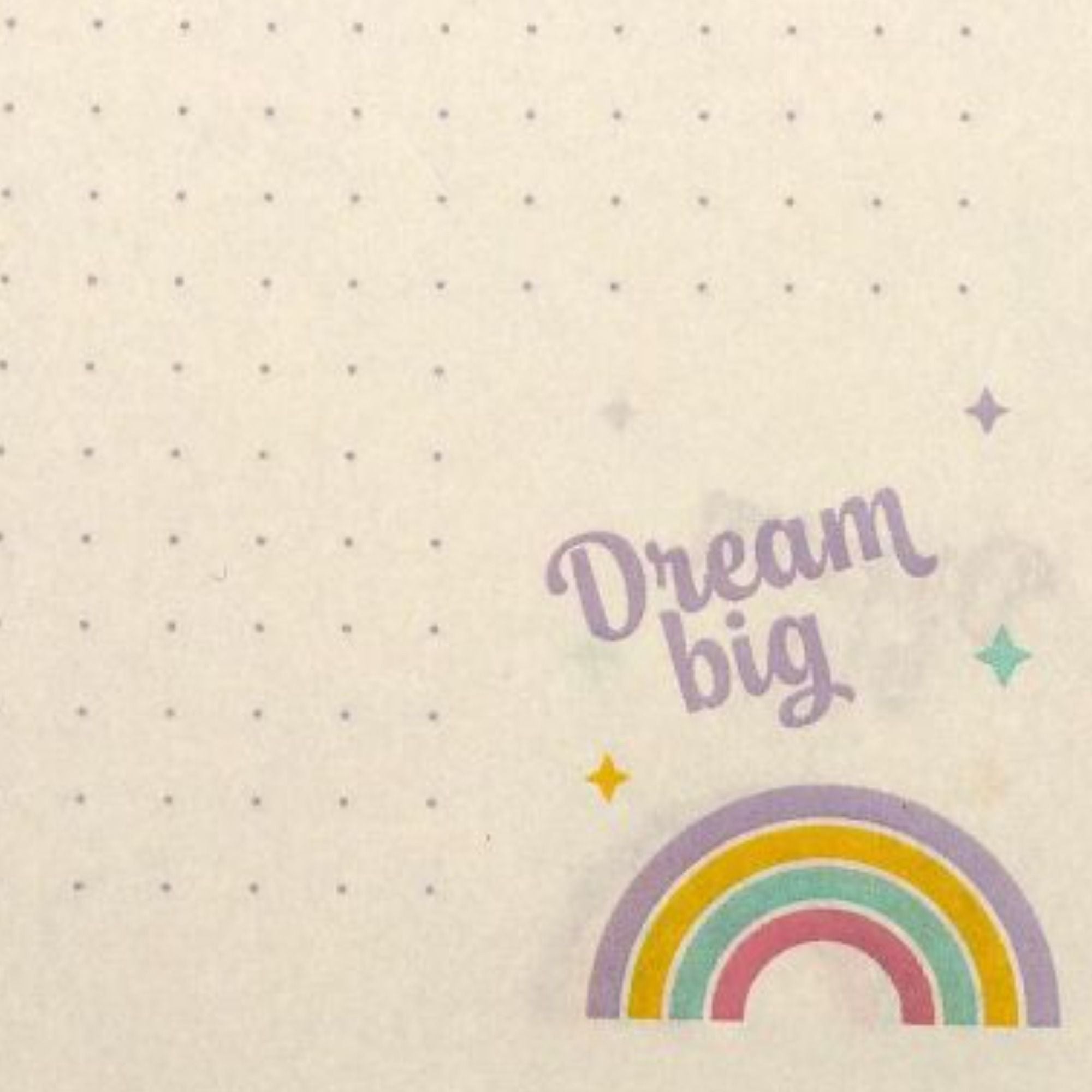 Besonders individuell wird es durch fünf Silikon-Charms – darunter Schleife, Herz, Regenbogen und Blume –, die sich nach Lust und Laune auf dem Cover anbringen und immer wieder neu umstecken lassen. Innen warten 160 punktierte Seiten, die Platz für kreative Notizen, Zeichnungen oder große Pläne bieten.