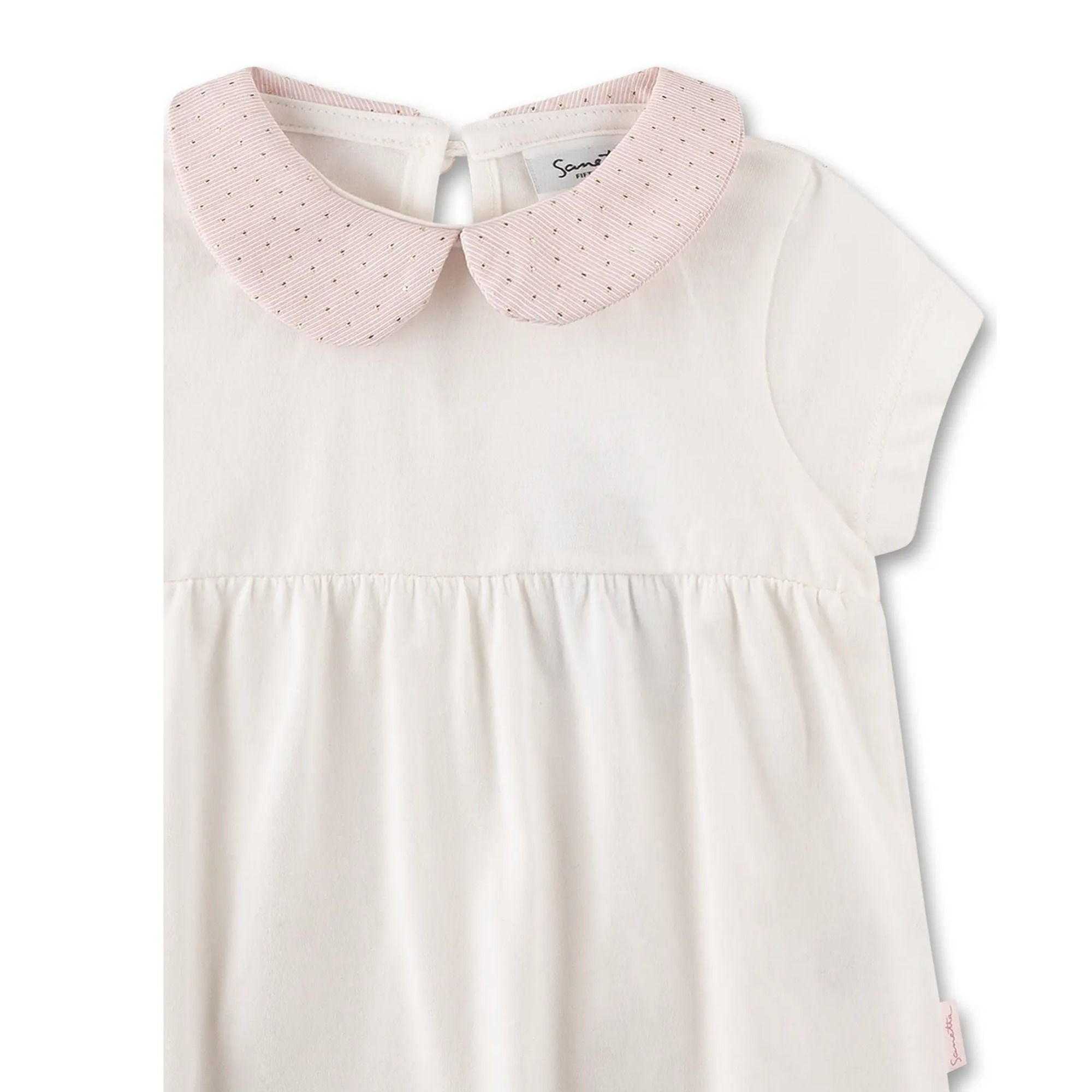 Dieses entzückende Mädchen-Shirt von Sanetta Fiftyseven ist ein Must-Have für jede Garderobe. Gefertigt aus weicher Velours-Single Qualität aus 100% Bio-Baumwolle, bietet es ein angenehmes Tragegefühl. Ein festlicher Bubikragen am Halsausschnitt sowie feine Raffungen entlang der Teilungsnaht verleihen dem Shirt eine spielerische Eleganz. Ein praktischer Tropfenverschluss am Rücken erleichtert das An- und Ausziehen.