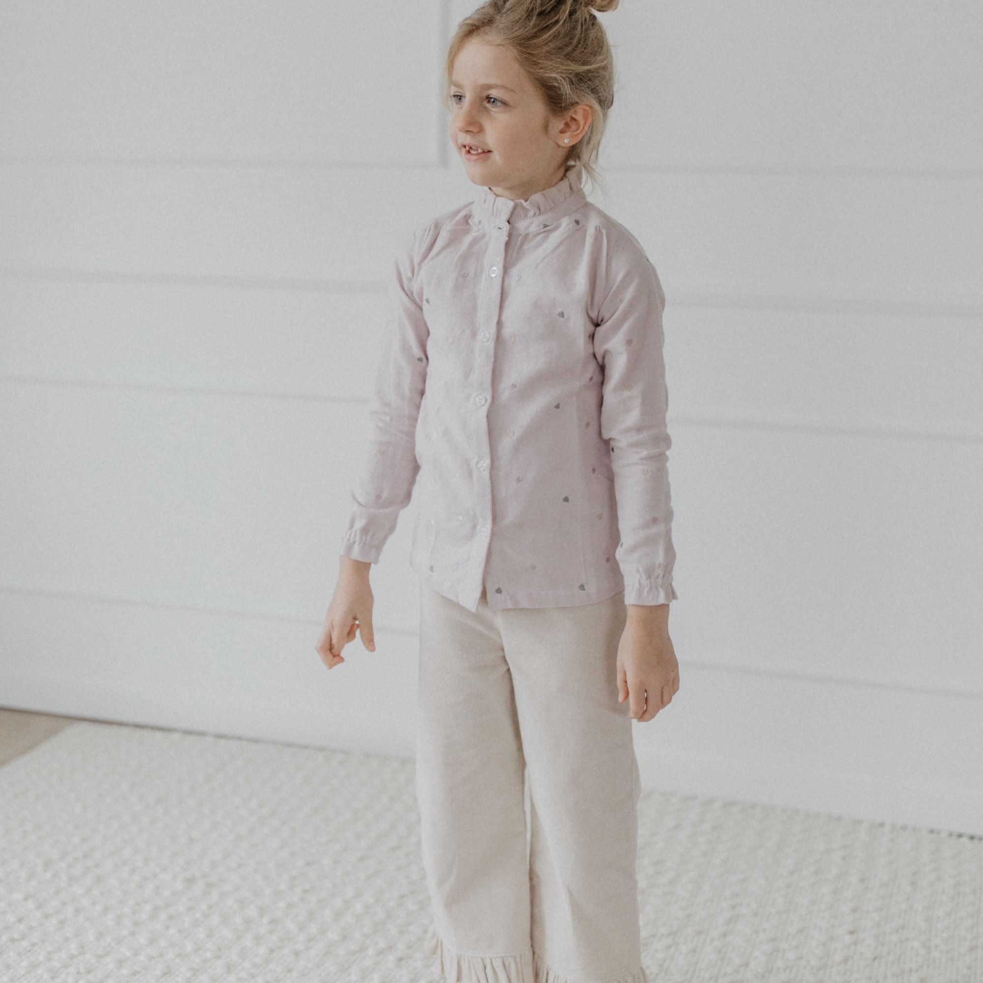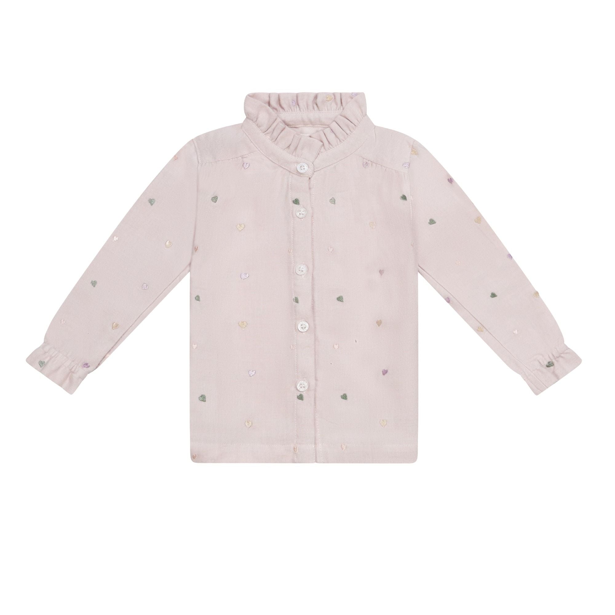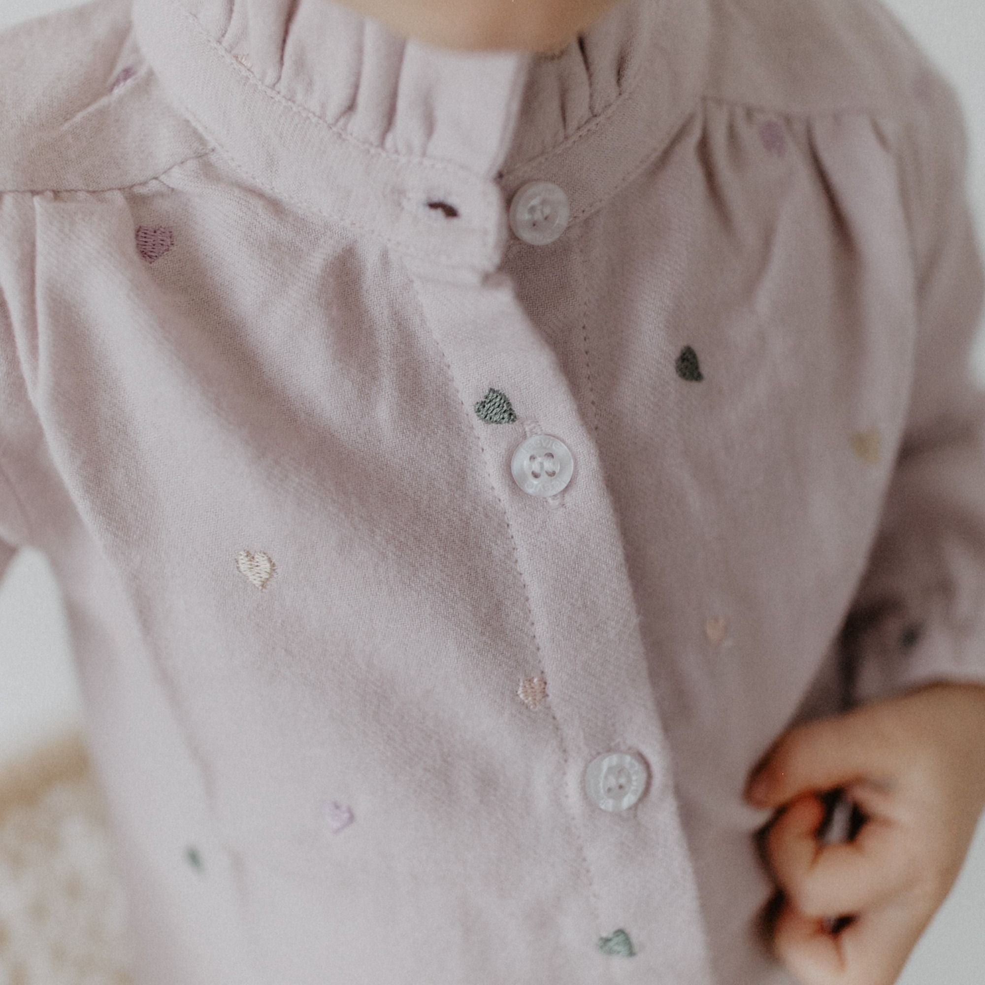 Flanellbluse mit Herzchen-Stickerei und Stehkragen aus 100% Bio-Baumwolle