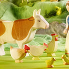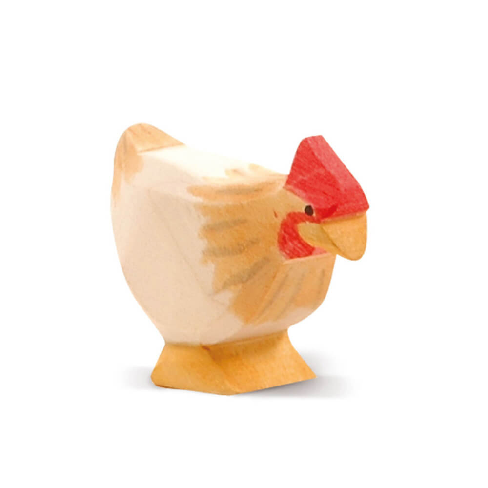 Das Huhn wird in reiner Handarbeit aus Ahornholz hergestellt und mit ausgesuchten Spielzeugfarben bemalt. Es gehört mit zur großen Ostheimer Familie und fördert das Freie Spiel und lässt Raum zur Entfaltung der eigenen Fantasie.