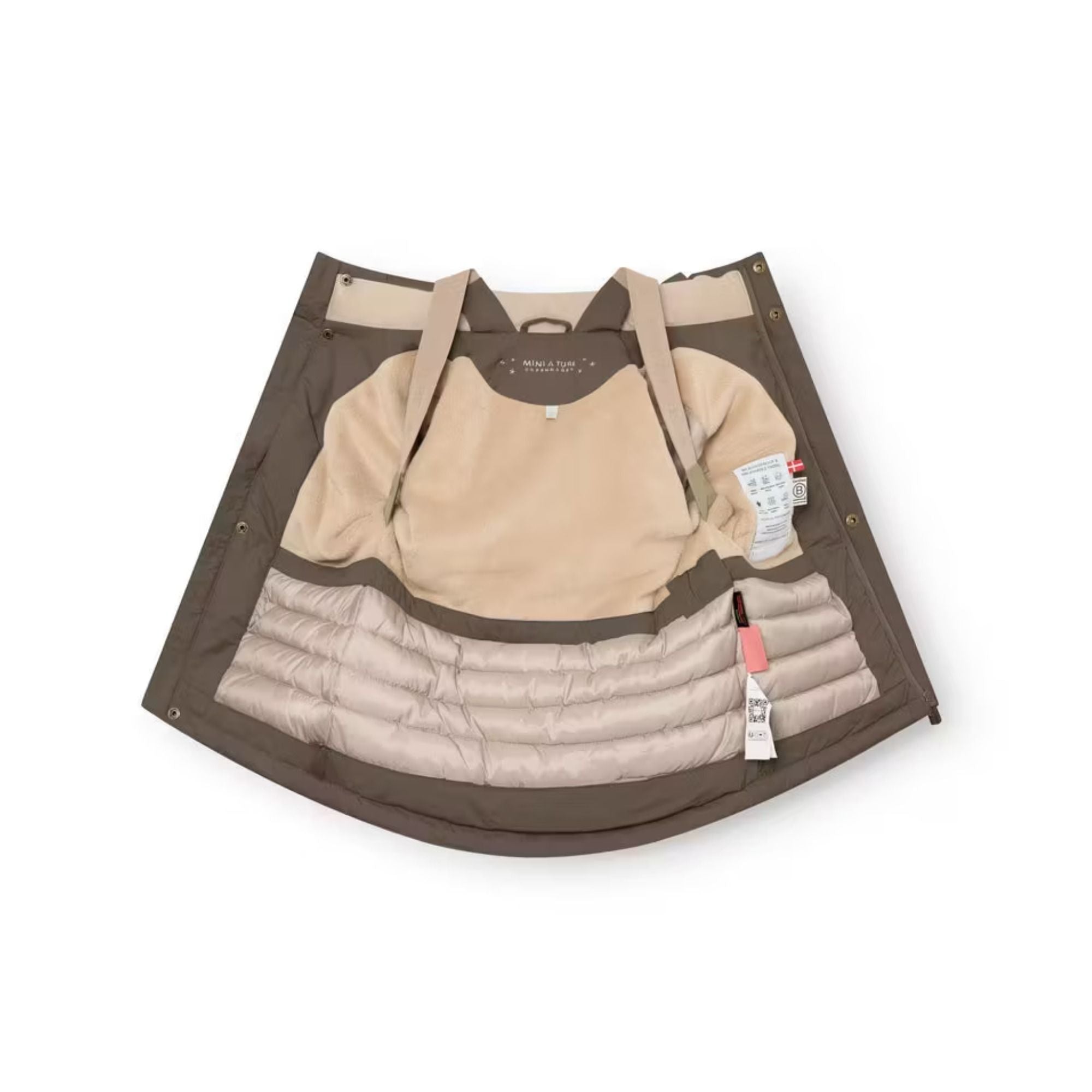 Die praktische Jacke Adyanko ist perfekt für den Winter. Sie ist winddicht, wasserdicht und atmungsaktiv und hält bis zu -25 Grad Celsius warm. Oben ist die Jacke mit weichem Fleece gefüttert, während der untere Teil mit einer umweltfreundlichen Alternative zu Daunen gefüttert ist. Die Kapuze ist abnehmbar und kann mit einem Gummiband angepasst werden, um den Wind abzuhalten. Die Jacke verfügt über innenliegende Träger, die für eine gute Passform sorgen und gleichzeitig kann die Jacke über den Schultern getragen werden, wenn es zu heiß wird. Die Schneemanschetten an den Handgelenken haben Daumenöffnungen, die Vordertaschen werden mit unsichtbaren Magnetknöpfen geschlossen. Die Ärmel haben eine verbesserte Passform, die eine größere Bewegungsfreiheit ermöglicht. Die Jacke verfügt über den für MINI A TURE typischen reflektierenden Stern in der Tasche und ein kleineres reflektierendes Logo auf der Rückseite.