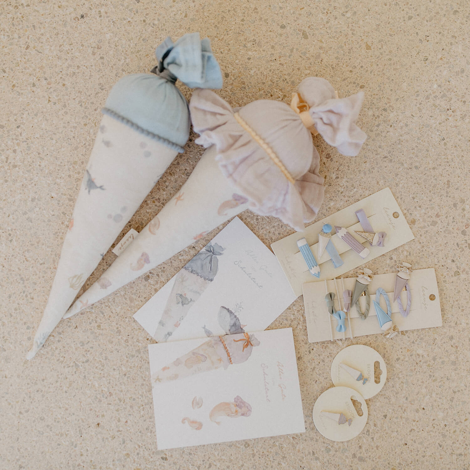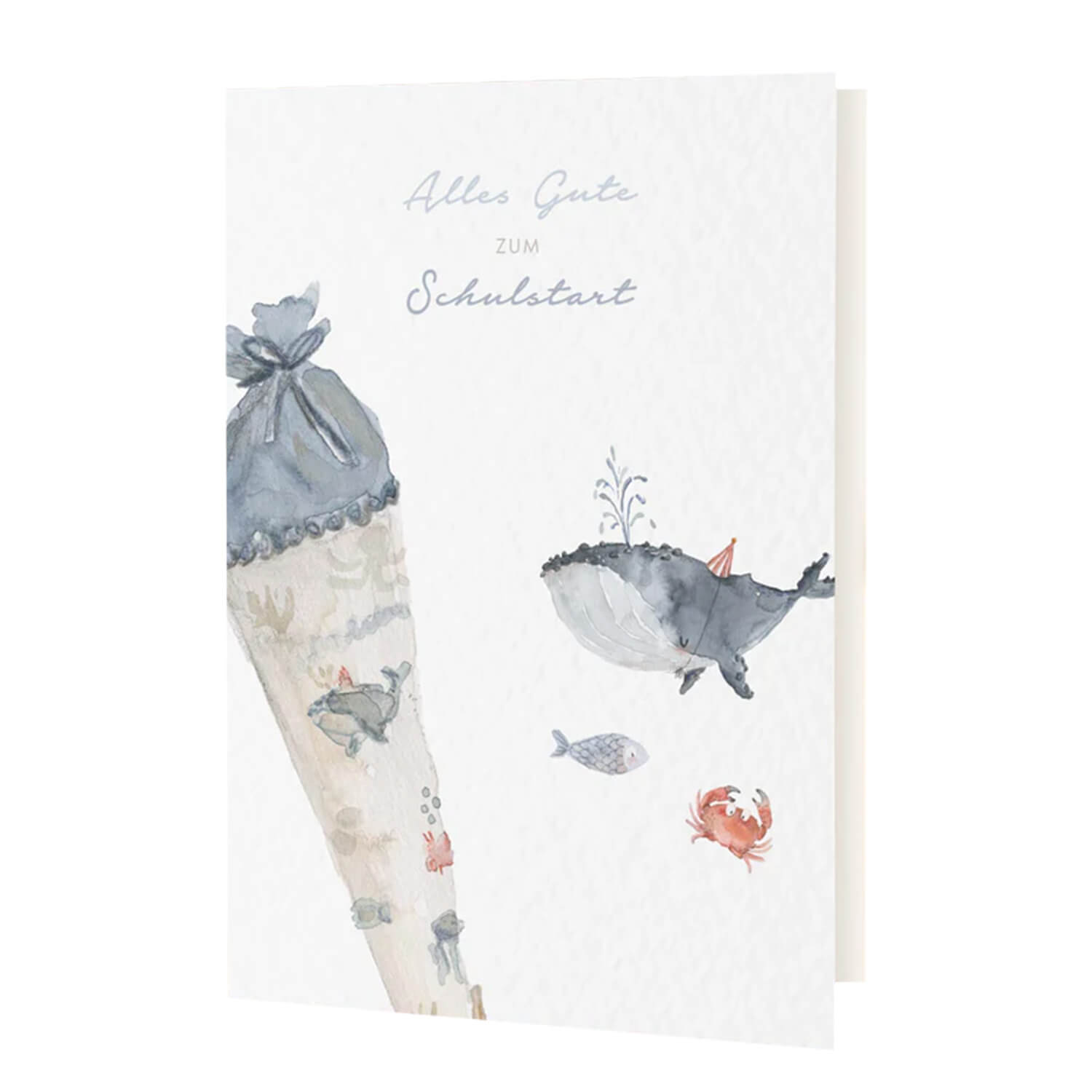 Unsere Klappkarte ist eine wunderschöne Grußkarte zur Einschulung. Die handillustrierten Motive machen die Klappkarte zu einer ganz hochwertigen Karte für Glückwünsche.