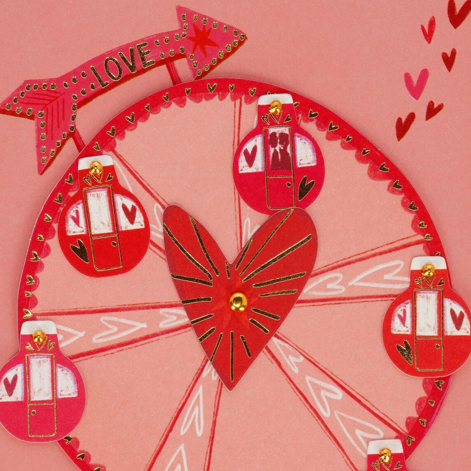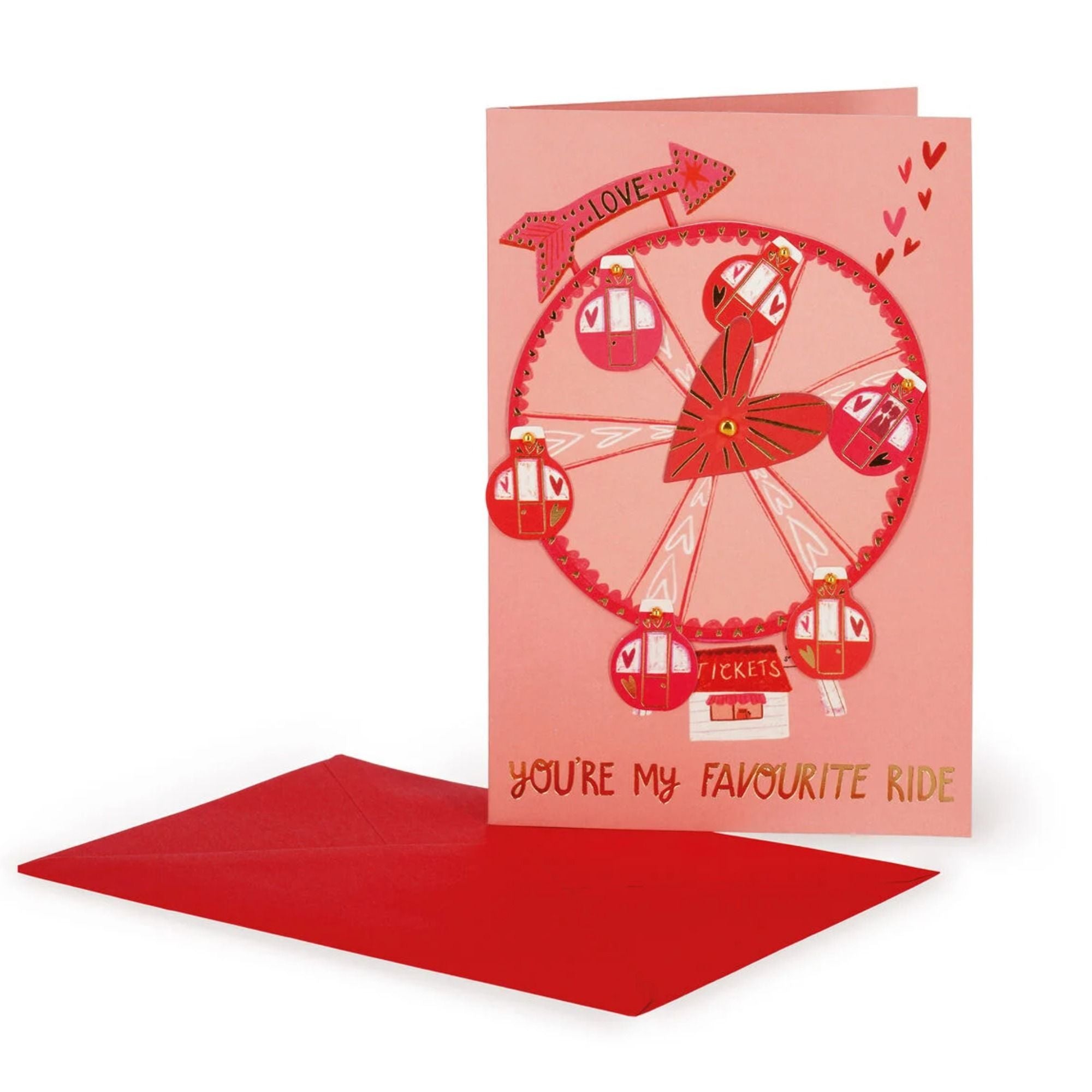 Steig ein ins Karussell der Liebe und drehe eine ganz besondere Runde mit der Glückwunschkarte Love Wheel von Legami. Diese außergewöhnliche Karte ist eine romantische und kreative Art, Gefühle zum Valentinstag auszudrücken. Die hochwertige Glückwunschkarte aus stabilem 300g pro Quadratmeter Karton begeistert mit einer rotierenden Applikation auf dem Umschlag, die dem Motiv Bewegung verleiht. Geprägte Details und farbige Folienveredelungen machen die Karte zu einem echten Hingucker und sorgen für einen liebevollen Wow Effekt beim Öffnen. Ideal für alle, die ihre Botschaft stilvoll und mit einem Hauch Magie überbringen möchten.