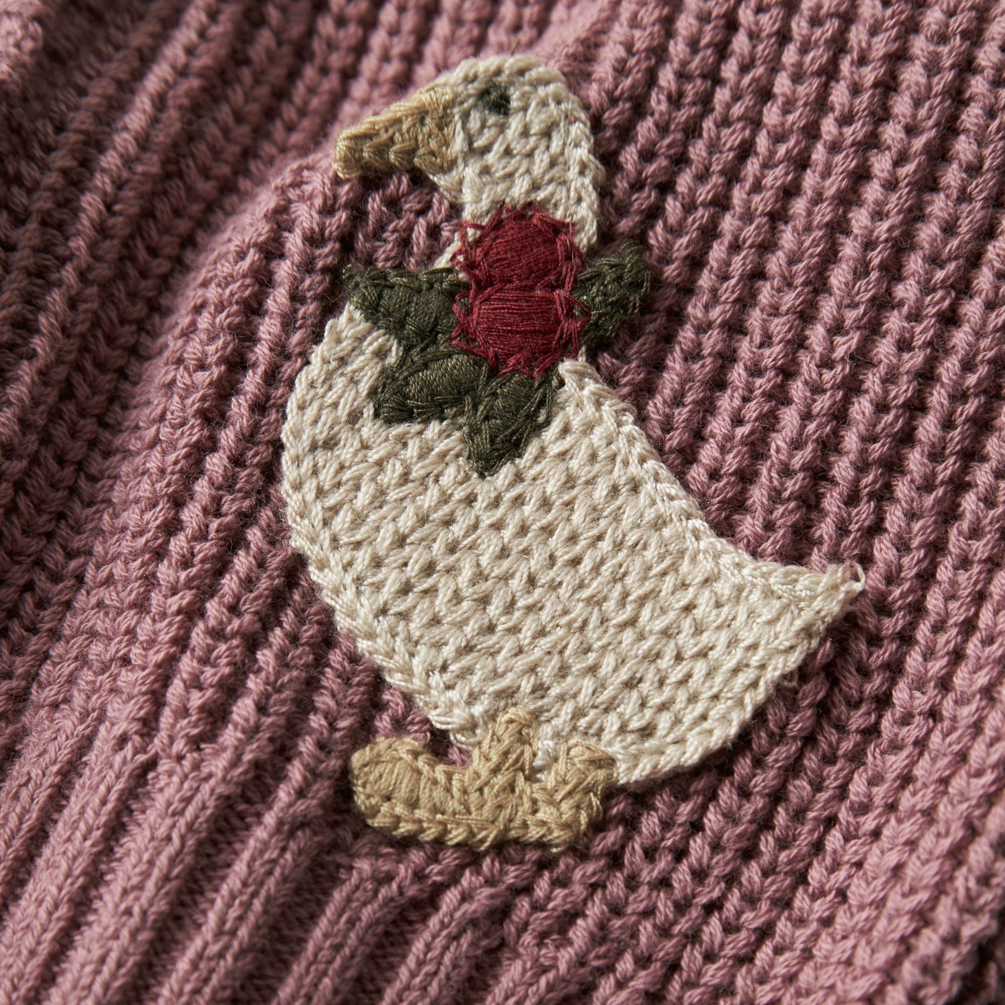 Diese hochwertige Strickjacke aus weicher Bio-Baumwolle überzeugt mit ihrem natürlichen Tragekomfort und der schönen, strukturierten Halbpatent-Strickoptik. Liebevoll gearbeitete, gestrickte Applikationen auf der Vorderseite verleihen dem Design einen charmanten, kindgerechten Look. Die Holzknöpfe und die bequeme Passform machen die Jacke zum idealen Begleiter für kühle Tage, gemütlich, nachhaltig und stilvoll zugleich.