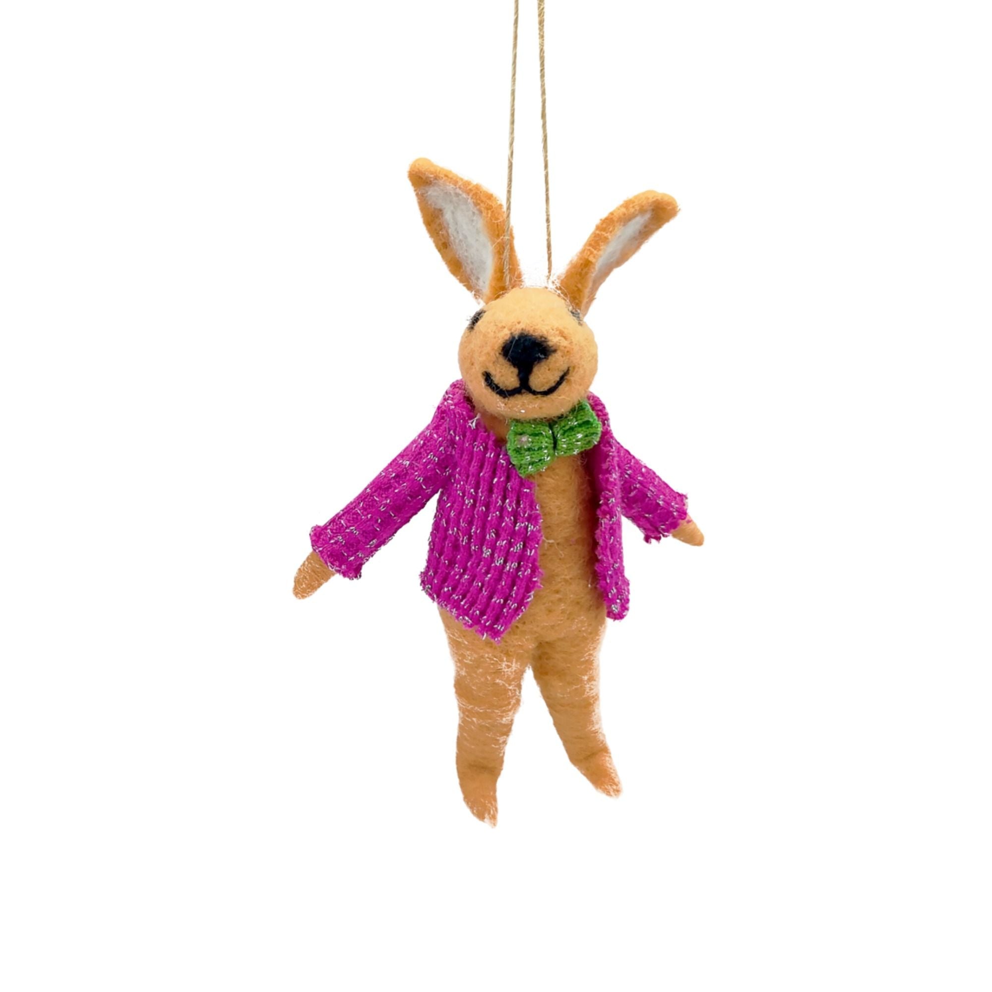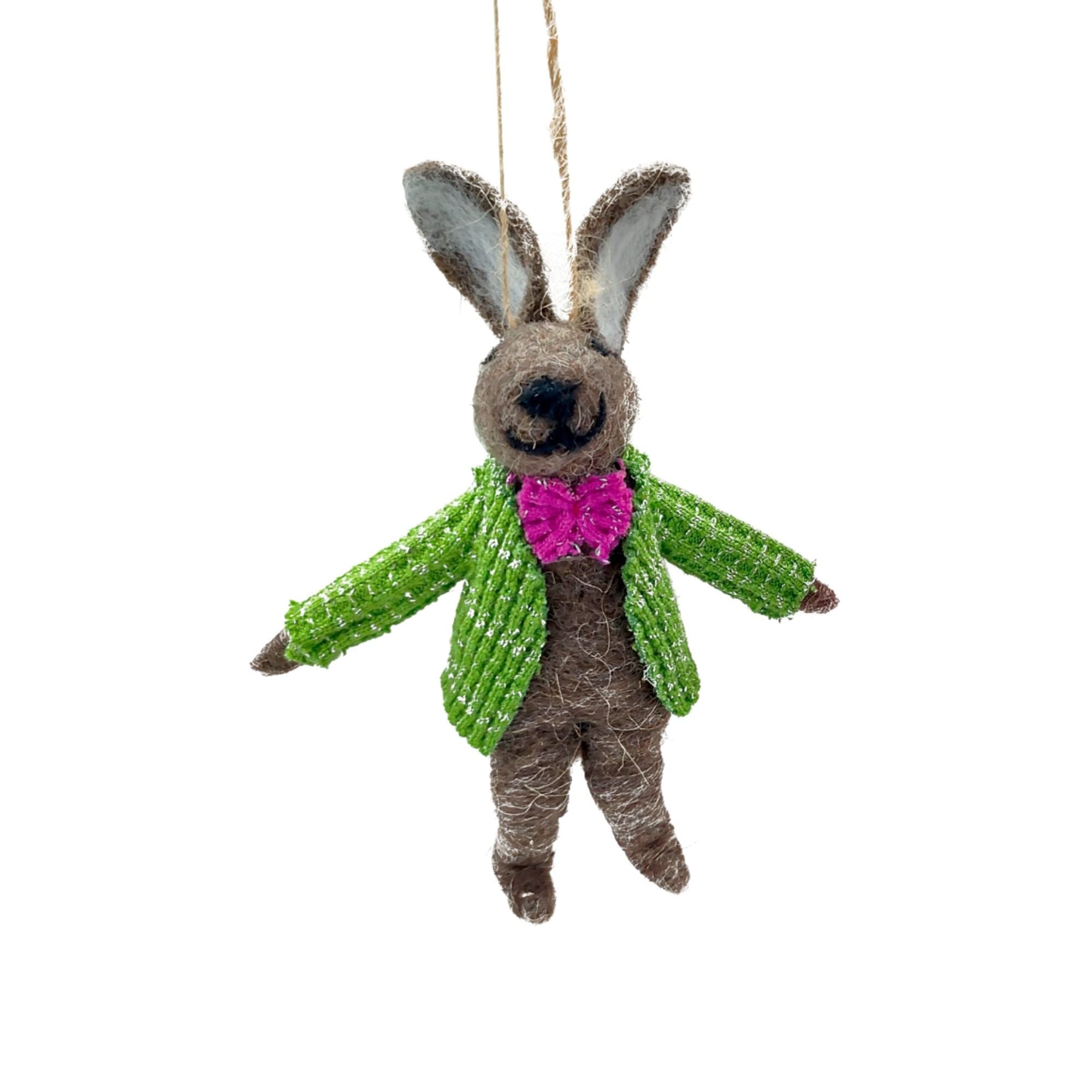 Dieser lustige Hasen-Anhänger aus Filz ist das perfekte Accessoire für den Frühling! Mit einem niedlichen Jackett und einer schicken Fliege verleiht der kleine Hase jedem Osterstrauß eine besondere Note. Der Anhänger eignet sich nicht nur als Dekoration für das Osternest, sondern auch als origineller Geschenkanhänger, der garantiert für ein Lächeln sorgt. Die filigrane Verarbeitung und die liebevolle Gestaltung machen diesen Hasen-Anhänger zu einem charmanten Highlight, das jedes Geschenk oder jede Dekoration verschönert. Ideal für alle, die eine besondere, humorvolle Note in ihre Osterfeierlichkeiten bringen möchten.