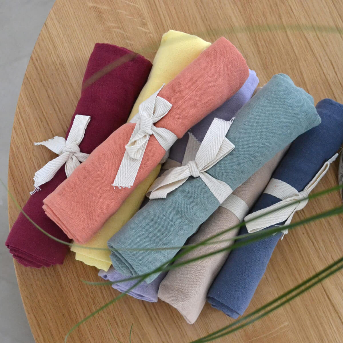 Wunderschöne Musselintücher aus 100% biologischer -Musselin-Baumwolle. Die Musselintücher sind multifunktional und können sowohl während des Stillens, beim Windelwechsel, beim Babybrechen, als auch als Unterlage in unserem Babynest, im Aktivitätsnest oder auf der Spielmatte verwendet werden. Seien Sie sich bewusst, dass der Stoff nach dem Waschen ein wenig schrumpft und seine Textur verändert.