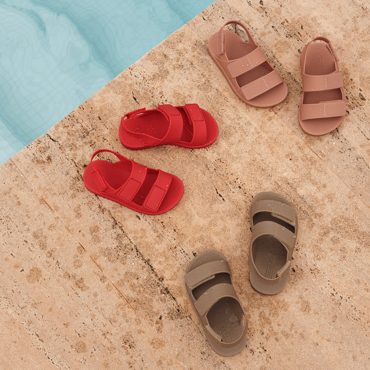 Die Joy Sandalen sind flexible Strandsandalen für Kinder, die frei von schädlichen Chemikalien sind. Perfekt für den Strand, da das PVC kein Wasser aufnimmt.