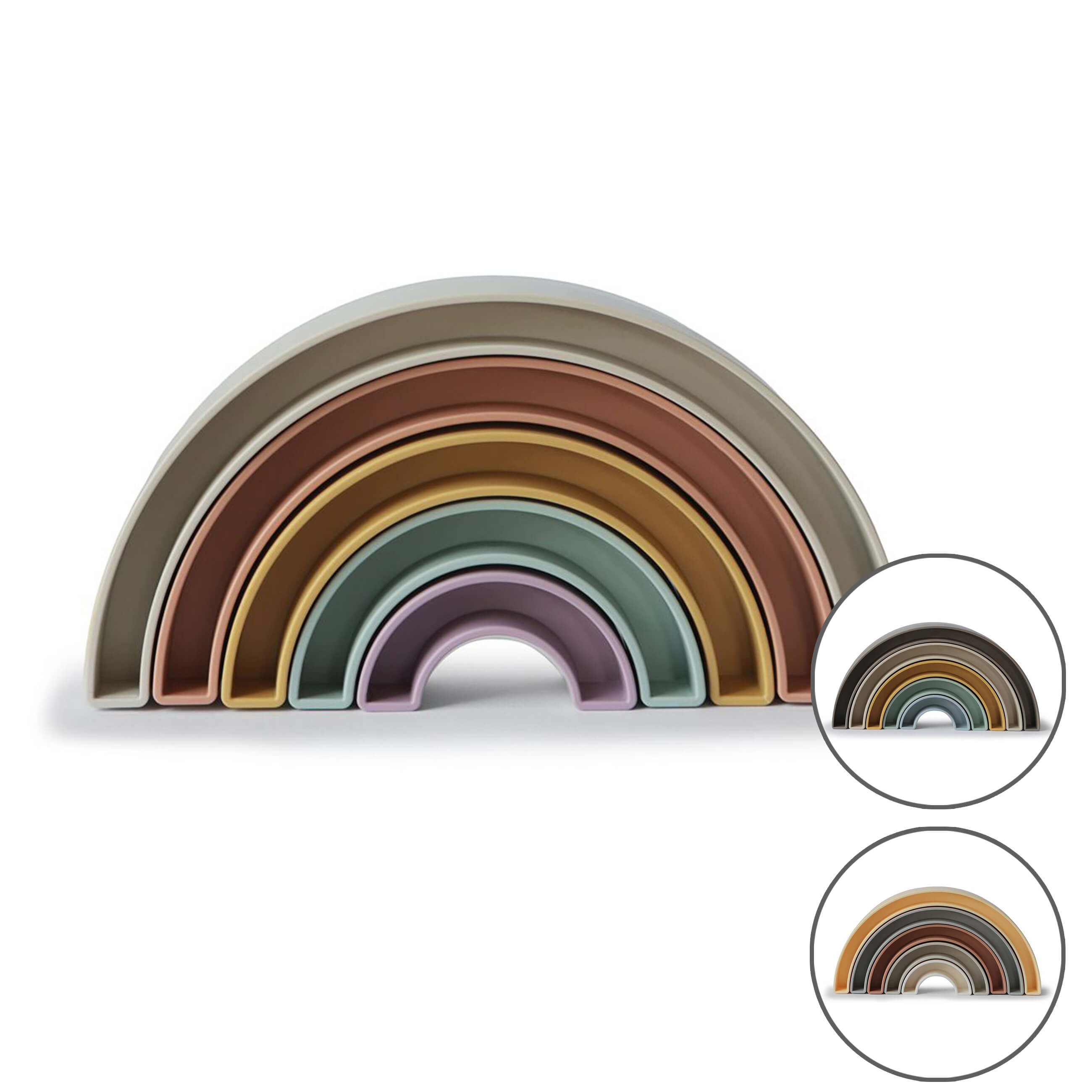 Der Regenbogen Stapelturm von Mushie hilft bei der Entwicklung des kognitiven Denkens, der Feinmotorik und der Sprachentwicklung Ihrers Kindes und ist aus Phthalat freiem Plastik hergestellt.