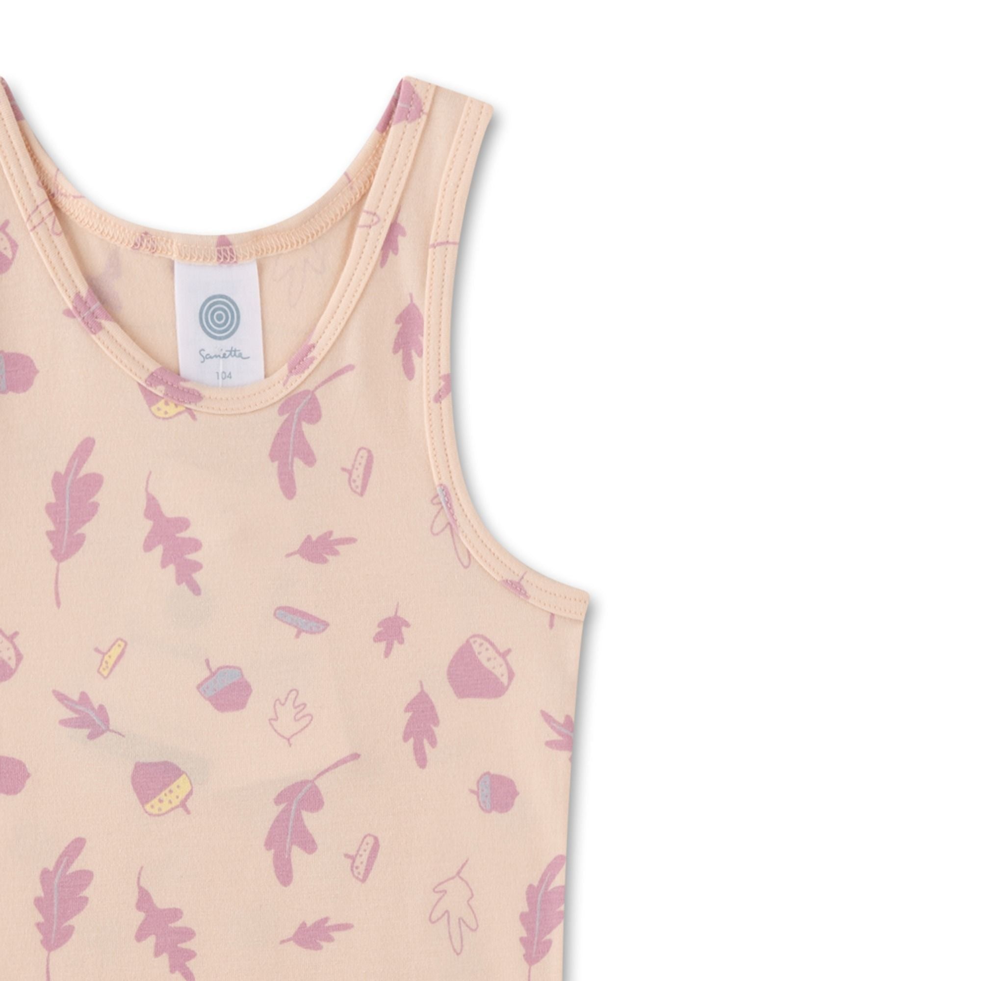 Dieses stilvolle Unterhemd von Sanetta, präsentiert in einem warmen Apricot-Ton mit einem herbstlichen Eichen-Alloverprint, bietet sowohl Stil als auch Komfort für den Alltag. Gefertigt aus weicher Bio-Baumwolle, ist es perfekt für junge Trägerinnen, die Wert auf Komfort und Nachhaltigkeit legen.