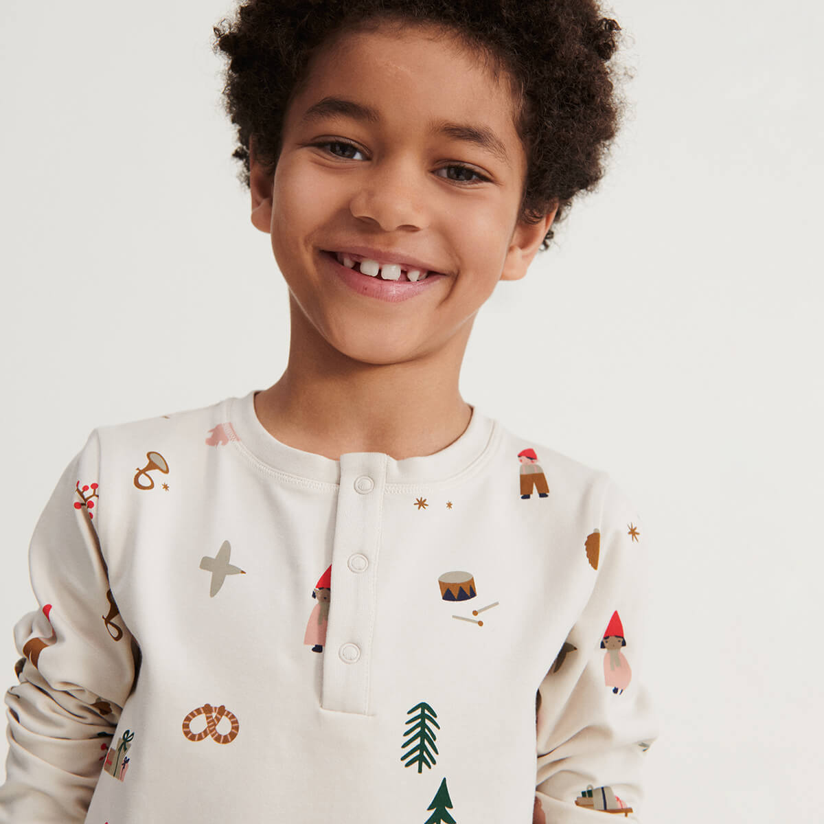 Entdecke unseren bedruckten Pyjama aus weicher und dehnbarer Bio-Baumwolle, der nicht nur für besten Tragekomfort sorgt, sondern auch mit nachhaltiger Herstellung punktet.