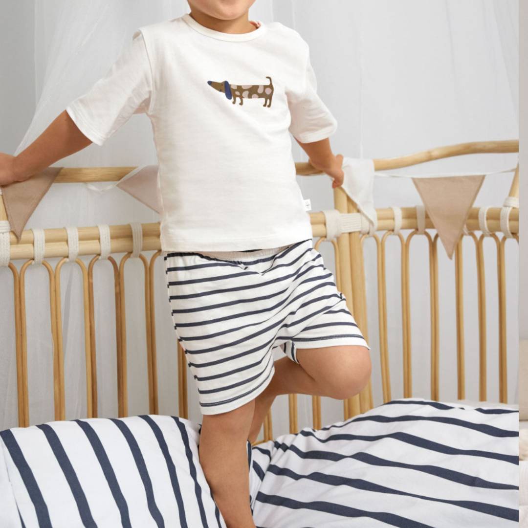 Der kurzarm Kinder Pyjama aus weicher Bio-Baumwolle eignet sich als toller Begleiter für die Nacht. Der kurze Schlafanzug ist weich und atmungsaktiv – perfekt für empfindliche Kinderhaut.