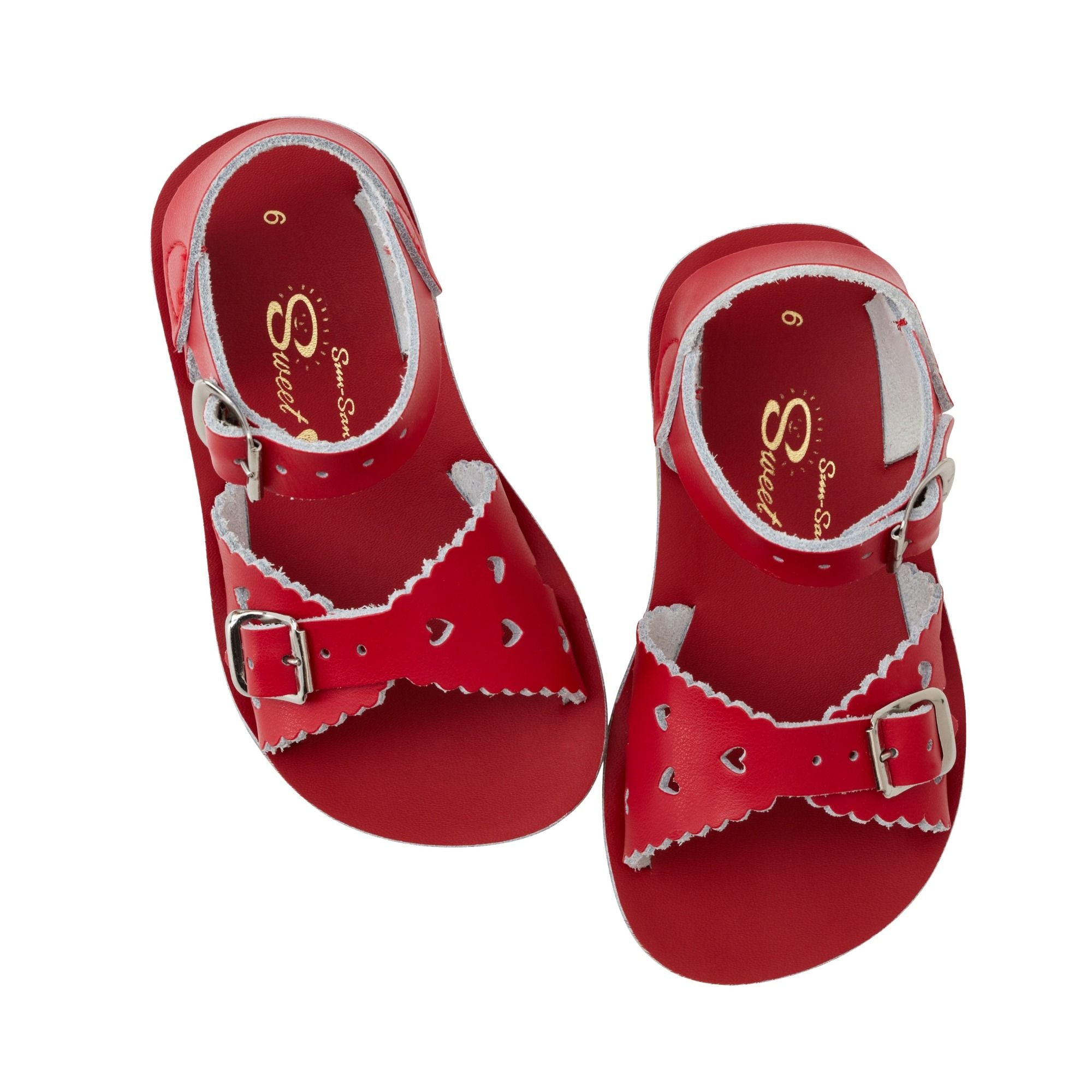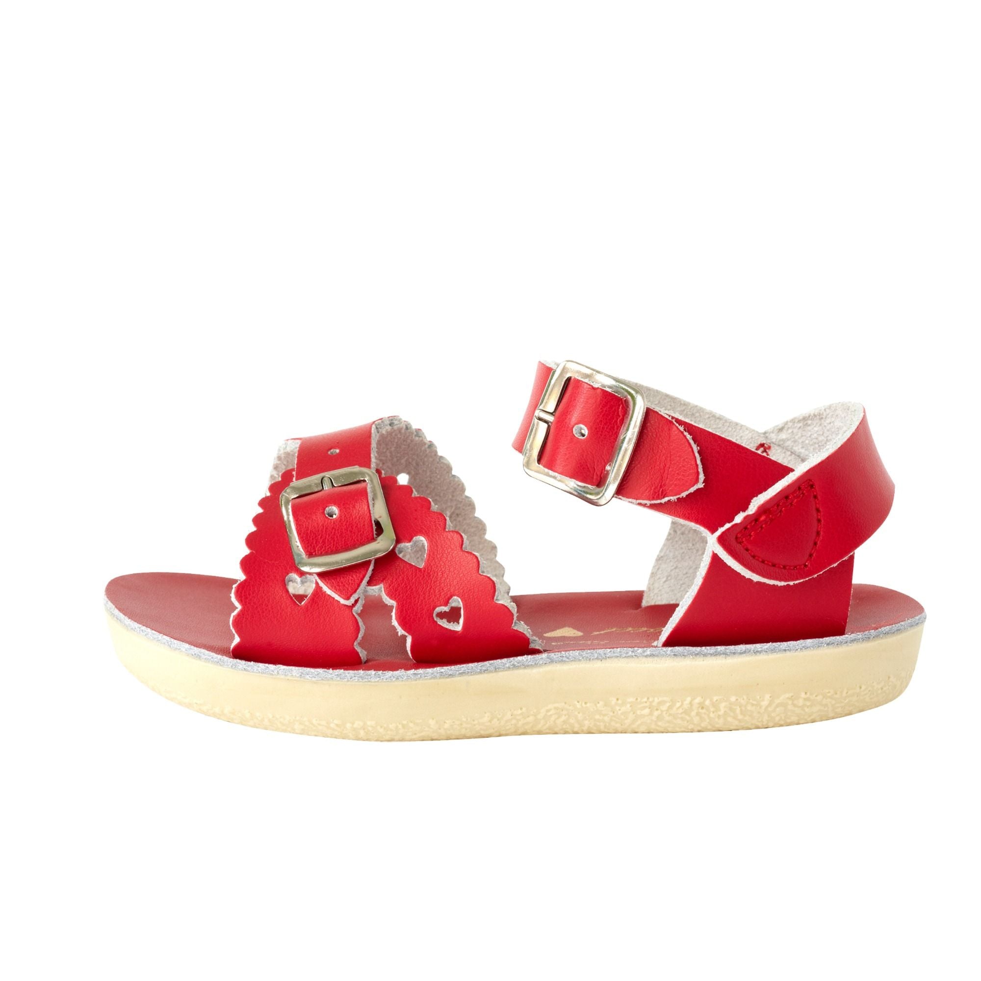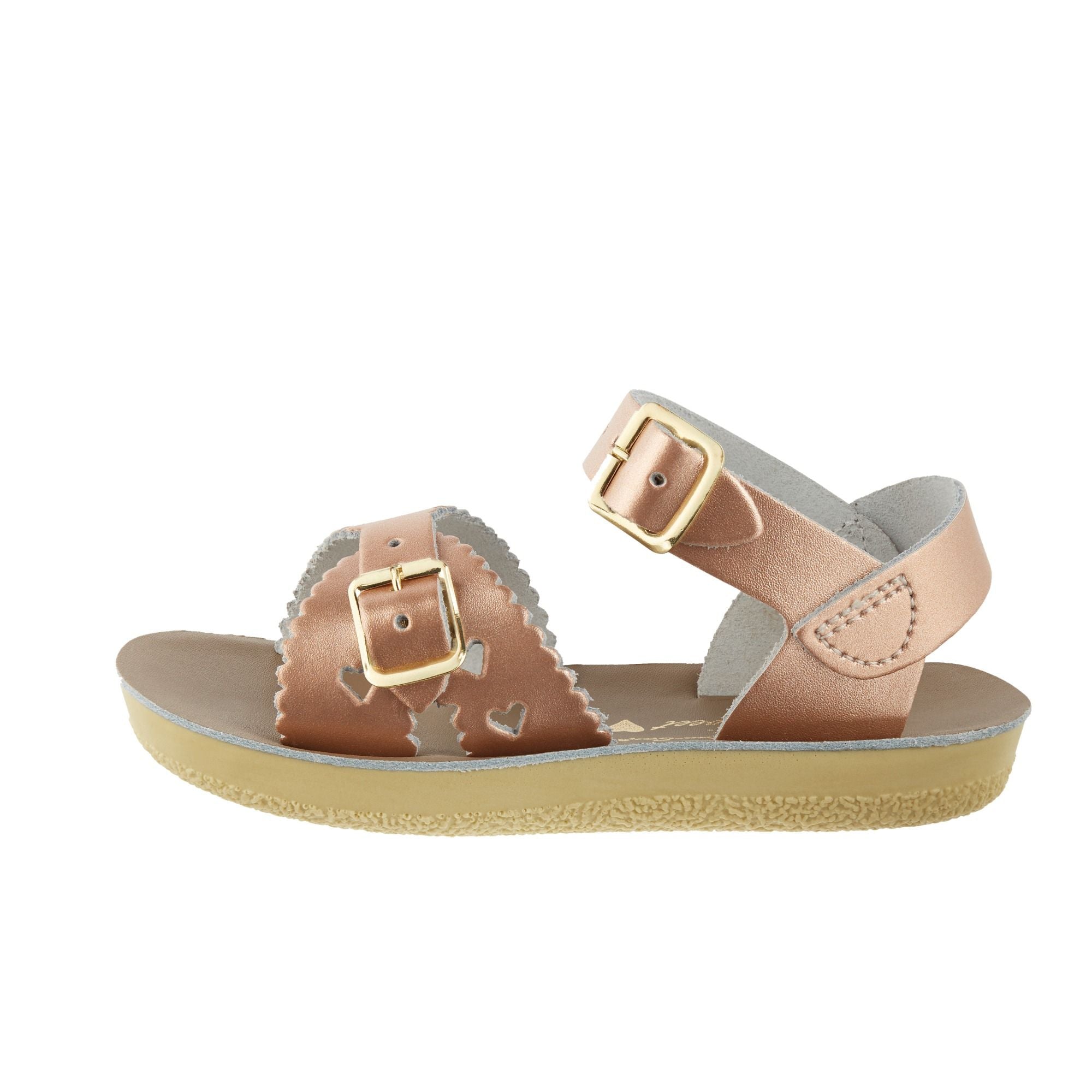 Die Sweetheart ist eine super süße Sandale mit herzförmigen Ausschnitten und sehr hübschen, geschwungenen Rändern. Die Sweetheart-Sandale ist vollständig verstellbar mit doppelt verstellbaren Schnallen an den Zehen- und Knöchelriemen, was sie perfekt für schmale oder breite Füße macht. Die gesamte Sun-San-Reihe kommt mit einer bequemen, weichen Urethansohle und rostfreien Schnallen. Wie alle Salt-Water-Sandalen sind auch diese 100 % wasserdicht und können mit einem milden Waschmittel von Hand gewaschen werden. Der weiche Finish macht diese Sandale zur perfekten Wahl für besondere Anlässe für Ihre Kinder.