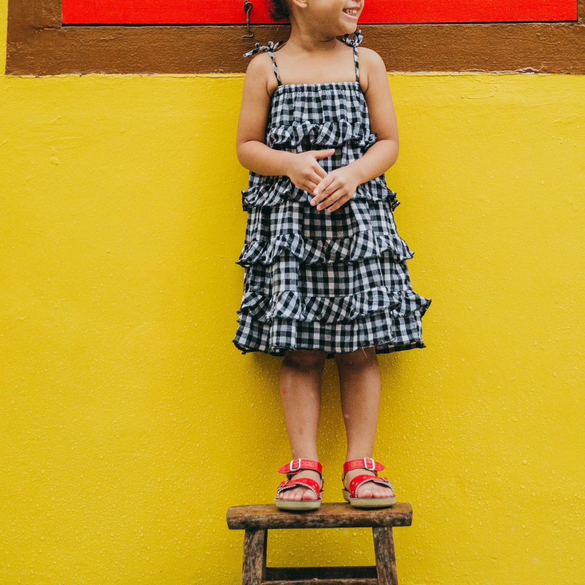 Hast du dich jemals gefragt, woher Salt-Water-Sandalen kommen? Ein Originaldesign aus den 1940er Jahren, wurden Salt-Water-Sandalen ursprünglich aus Lederresten hergestellt, um der Lederknappheit während des Zweiten Weltkriegs zu begegnen. Walter Hoy verwendete die Reste, um das erste Paar für seine Tochter Margery zu kreieren. Bald verbreitete sich die Nachricht, und schon bald fragten Familien aus ganz St. Louis, ob Walter und seine neue Schuhfirma Hoy Sandalen für ihre Kinder herstellen könnten.