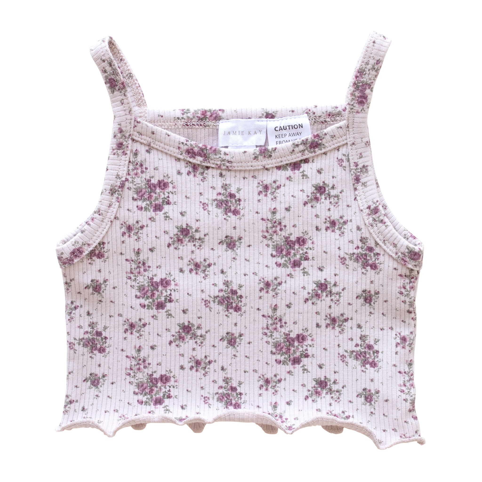 Kurzes Feinripp Oberteil mit Trägern und süßen Rüschen aus 95% Bio-Baumwolle und 5% Elasthan von Jamie Kay aus der Bloom Kollektion.
