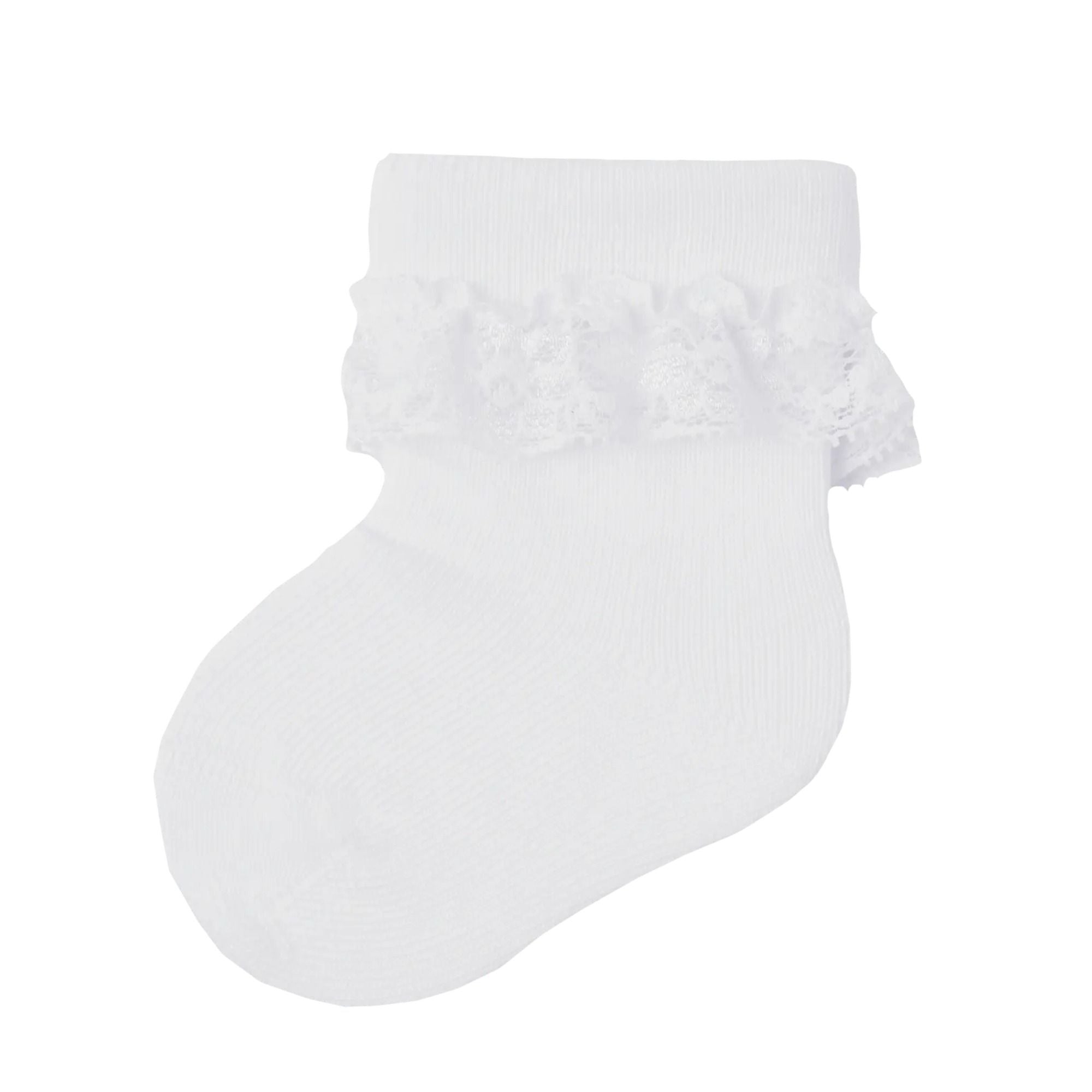 Diese entzückenden Baby-Socken aus weicher Baumwolle bieten optimalen Tragekomfort und ein angenehmes Hautgefühl. Der zarte Rüschenabschluss verleiht ihnen einen verspielten, klassischen Look – perfekt für besondere Anlässe oder den Alltag. Dank der elastischen Bündchen sitzen die Socken zuverlässig, ohne einzuschneiden.