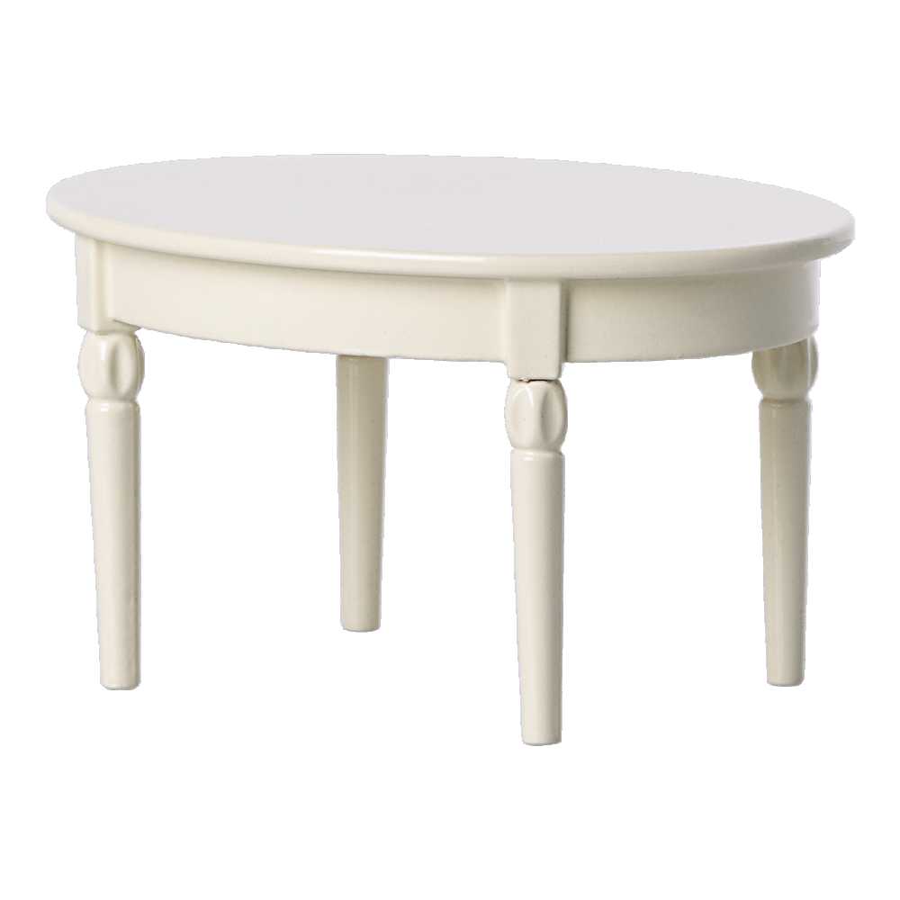 Der Esstisch ist für die kleinen Freunde gemacht, um einen Ort zu haben, an dem sie sich versammeln und zu einem guten Essen treffen können. Es ist aus Metall gefertigt und hat schöne detaillierte Beine. Der Tisch passt in das Schloss.