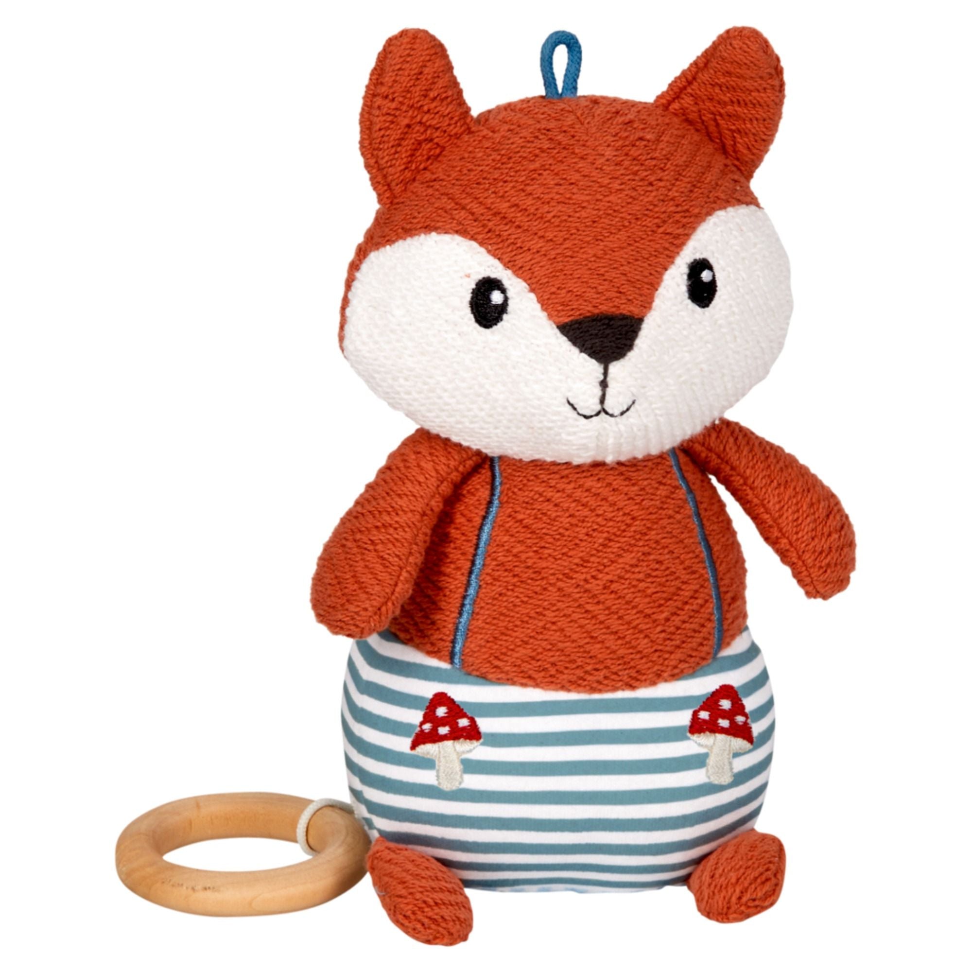Material: Das Obermaterial besteht zu 100% aus Baumwolle, was ein weiches und angenehmes Gefühl vermittelt. Die Füllung besteht aus 100% recyceltem Polyester, was nicht nur kuschelig ist, sondern auch umweltfreundlich hergestellt wurde. Der Ring zum Aufziehen ist aus Buchenholz gefertigt, was für zusätzliche Stabilität und Sicherheit sorgt.