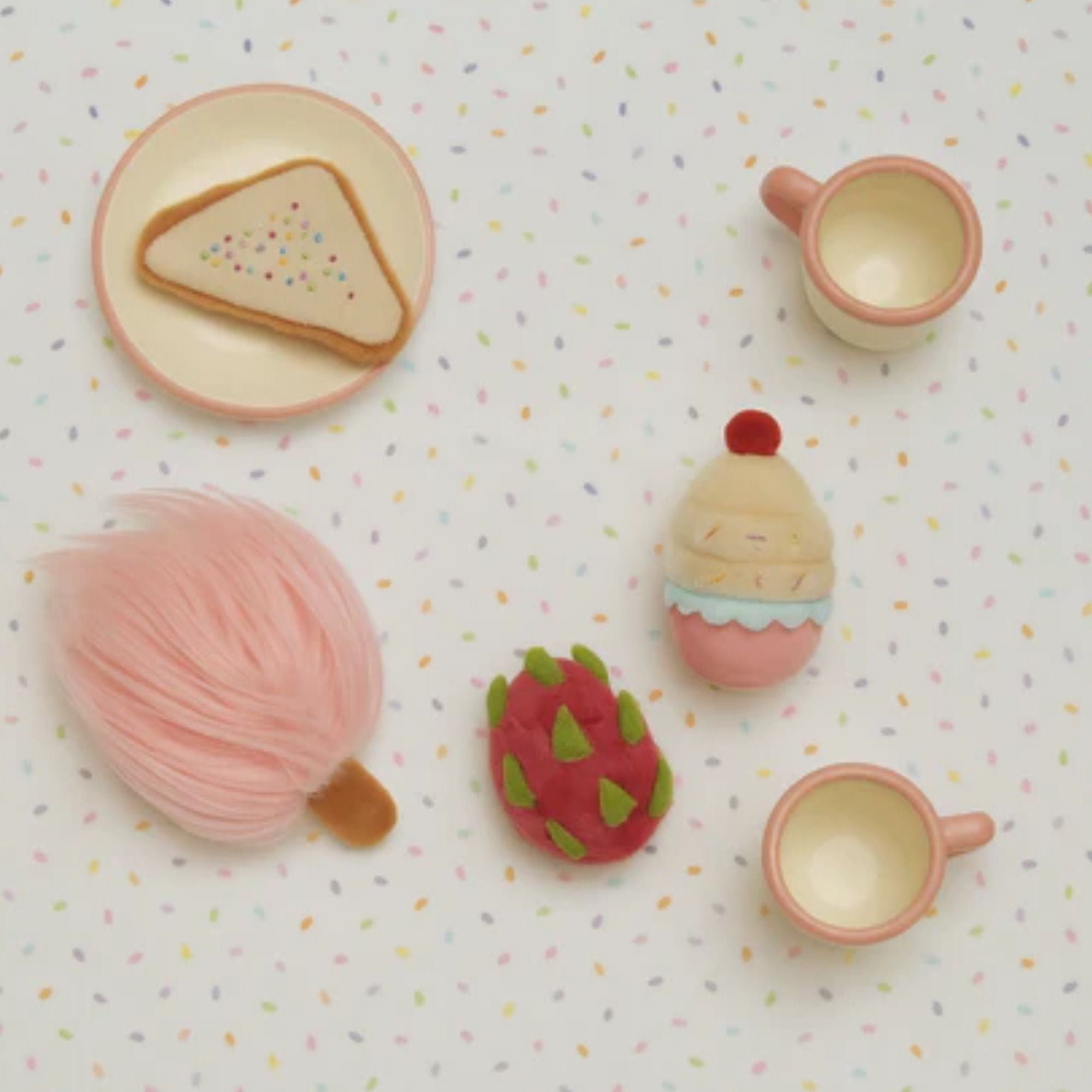 Dank der in jedem Stück integrierten magnetischen Magie haften diese Leckereien (buchstäblich!) an Fairy Dinkum Dolls und Dinkum Pets und erwecken so das Geschichtenerzählen zur Snackzeit zum Leben. Von flauschiger Zuckerwatte bis hin zum bunten Cupcake – jedes mundgerechte Stück ist ein Genuss. Genau die richtige Größe für kleine Hände und große Fantasie – dieses Set macht jede Teeparty oder jedes Spieltreffen zu einem Fest voller Spaß.
