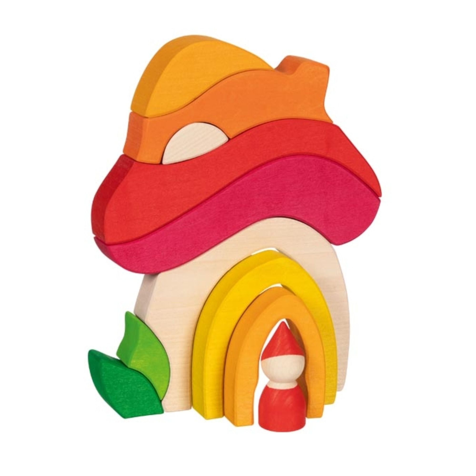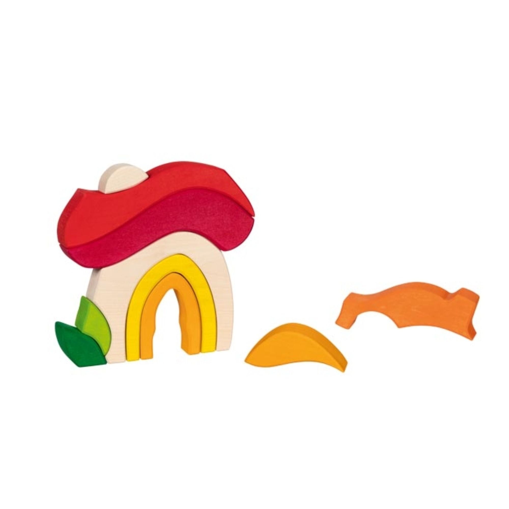 Mit den einzelnen Elementen lassen sich ein Pilz, ein kleines Häuschen oder viele andere Formen gestalten – so entsteht beim Spielen immer wieder Neues und der Fantasie sind keine Grenzen gesetzt.