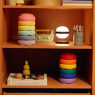 - Größe und Gewicht: Mit einem Durchmesser von 13,5 cm und einer Höhe von 6 cm ist der Stapelstein® Original Mini perfekt für kleine Hände und wiegt nur 380 g.