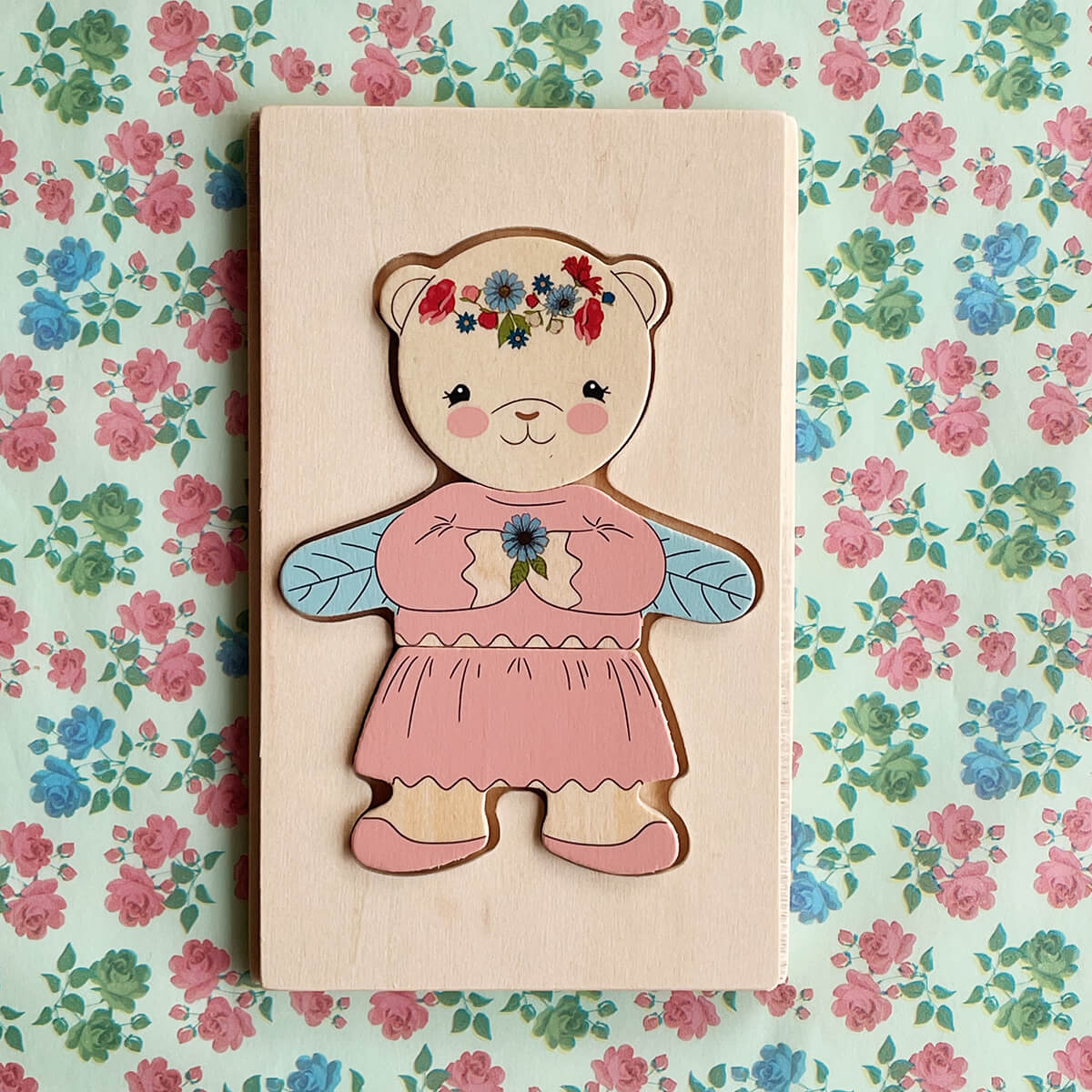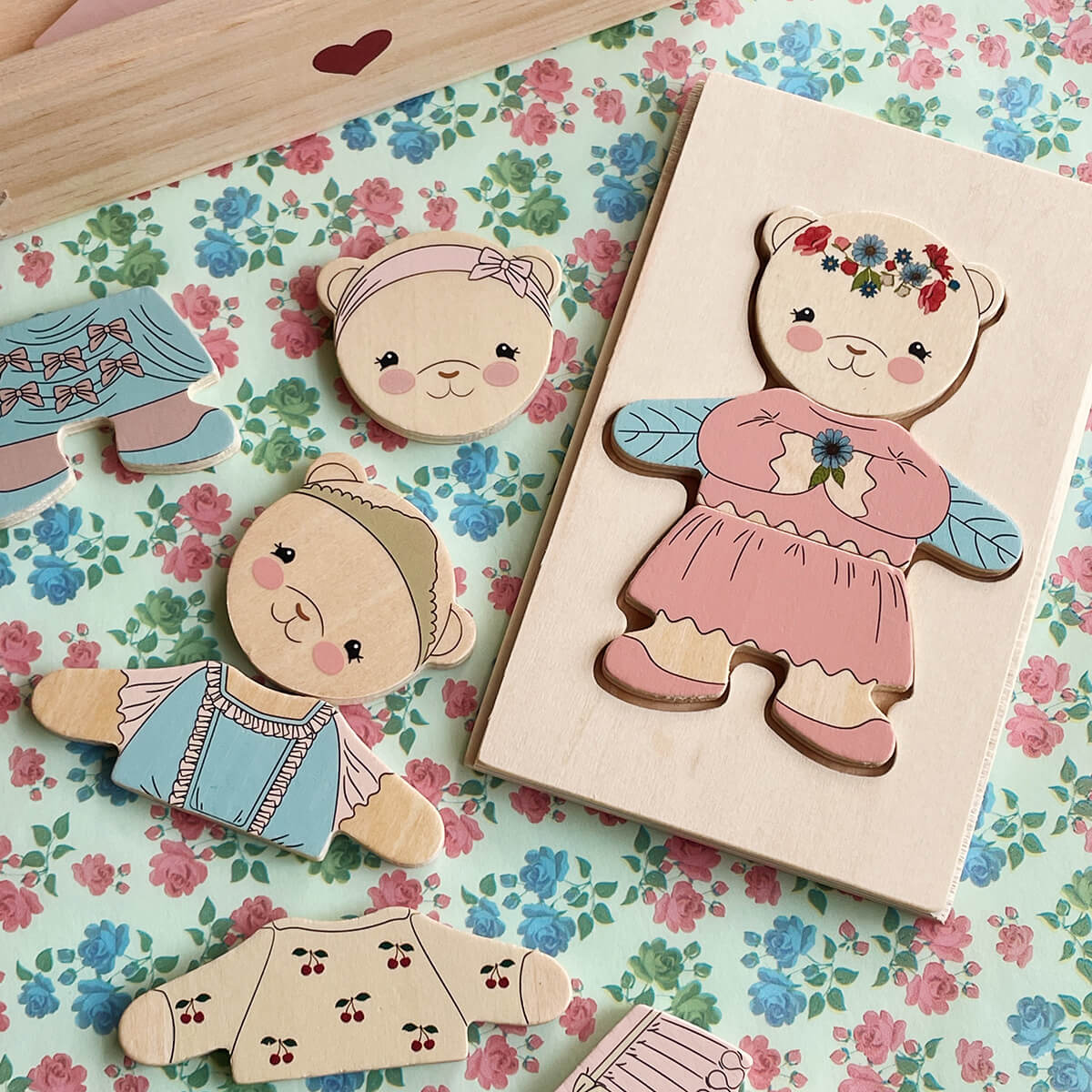 Wooden Teddy Dress-Up Puzzle aus zertifiziertem Holz von Konges Slojd