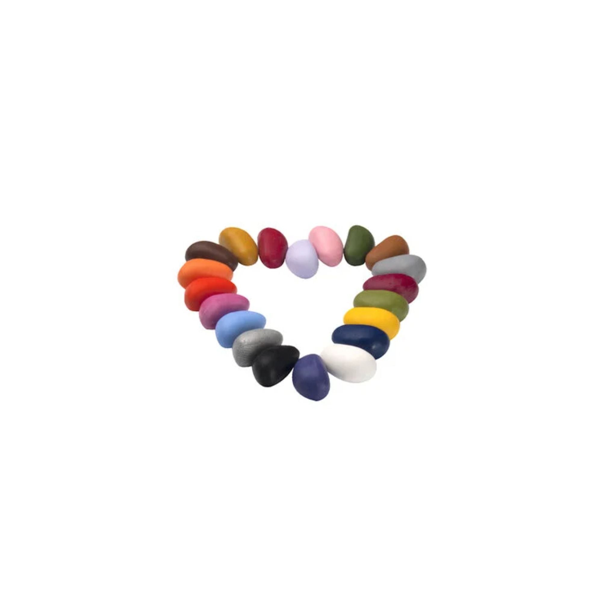 Crayon Rocks stellen tolle wachsmalfarben auf natürlicher Basis her. Die Form der Wachsmalstifte ist perfekt auf kleine Kinderhände angepasst. Das Benutzen dieser Stifte fördert die richtige Haltung eines Stiftes und bereitet die Kinder spielerisch auf den Dreifingergriff vor, den man zum Schreibenlernen braucht. Die Form ermöglicht das Ausmalen von Linien und großen Flächen mit kleinen Fingern. Kinder benötigen für diese Buntstifte wenig Kraft, weshalb sie auch für Kleinkinder super geeignet sind. Diese natürlichen Sojawachsstifte werden in den USA aus lokal angebauten Sojabohnen hergestellt und mit natürlichen Mineralpigmenten gefärbt. Ungiftige, natürliche Sojawachsmalstifte in vielen Farben.