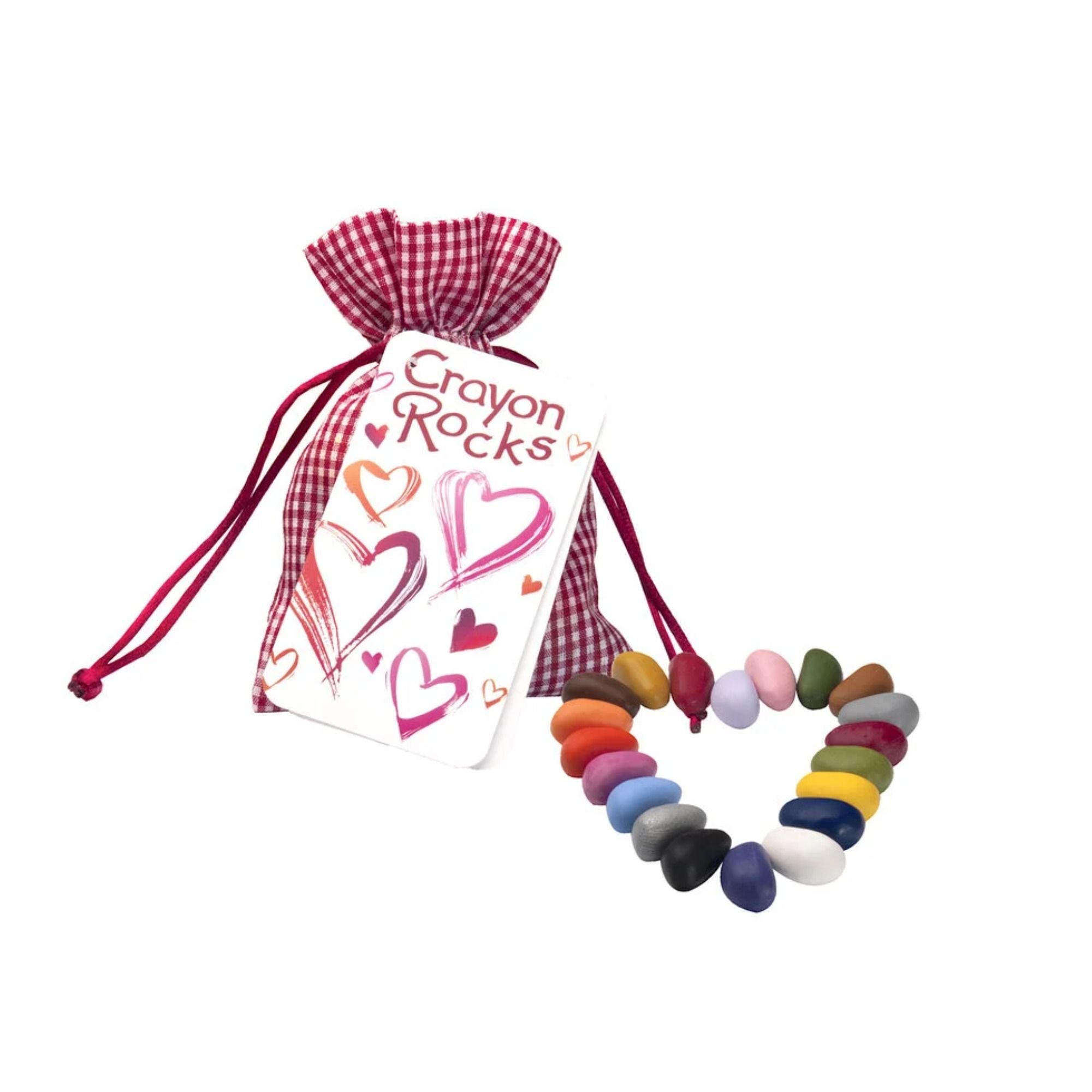 In diesem Beutel in Rot und Weiß – unserem bezaubernden Valentinstags- oder Herzbeutel, manchmal auch Weihnachtsbeutel genannt – befinden sich 20 Crayon Rocks in 20 verschiedenen Farben.