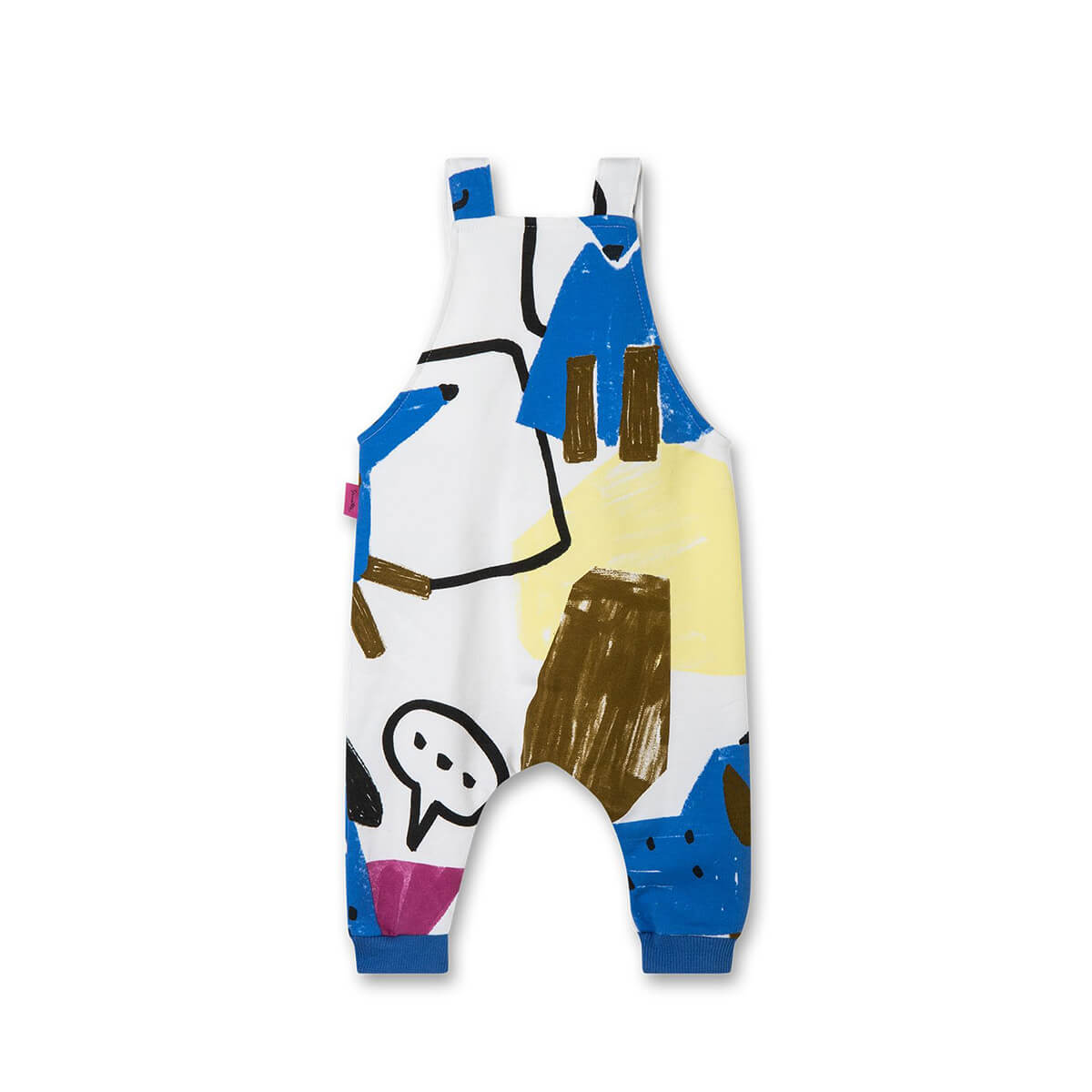 Die bequeme Latzhose für Kleinkinder und Babys ist mit einem kreativen Hunde-All-Overprint in knalligen Farben gestaltet. Sie ist hergestellt in einer weichen und elastischen Single-Velours-Qualität aus 95% Bio-Baumwolle und 5% Elasthan. Dabei ist die Latzhose in einem originellem All-Overprint mit Hunden in Blau und farblichen Akzenten in Pink und Gelb gemustert. Die Größe ist anpassbar durch verstellbare Träger mit einer zweiten Knopfreihe, dazu bequem durch Rippbündchen an den Beinen, die das gute Tragegefühl maximieren.