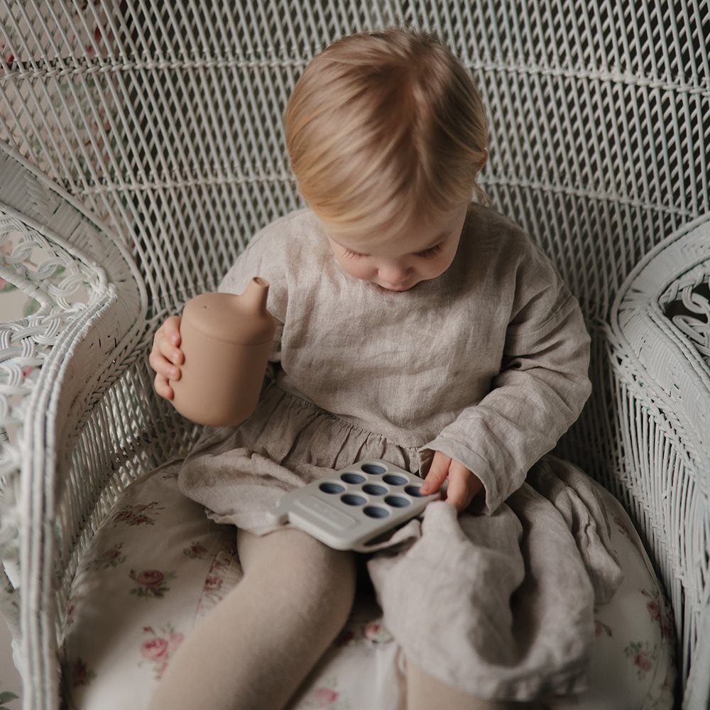 Der Silly Cup ist aus 100% lebensmittelechtem Silikon und ist perfekt um von den Kleinen gehalten zu werden und ist der perfekte Becher für die Übergangsphase von der Flasche zum Becher. Der Becher ist von Mushie.