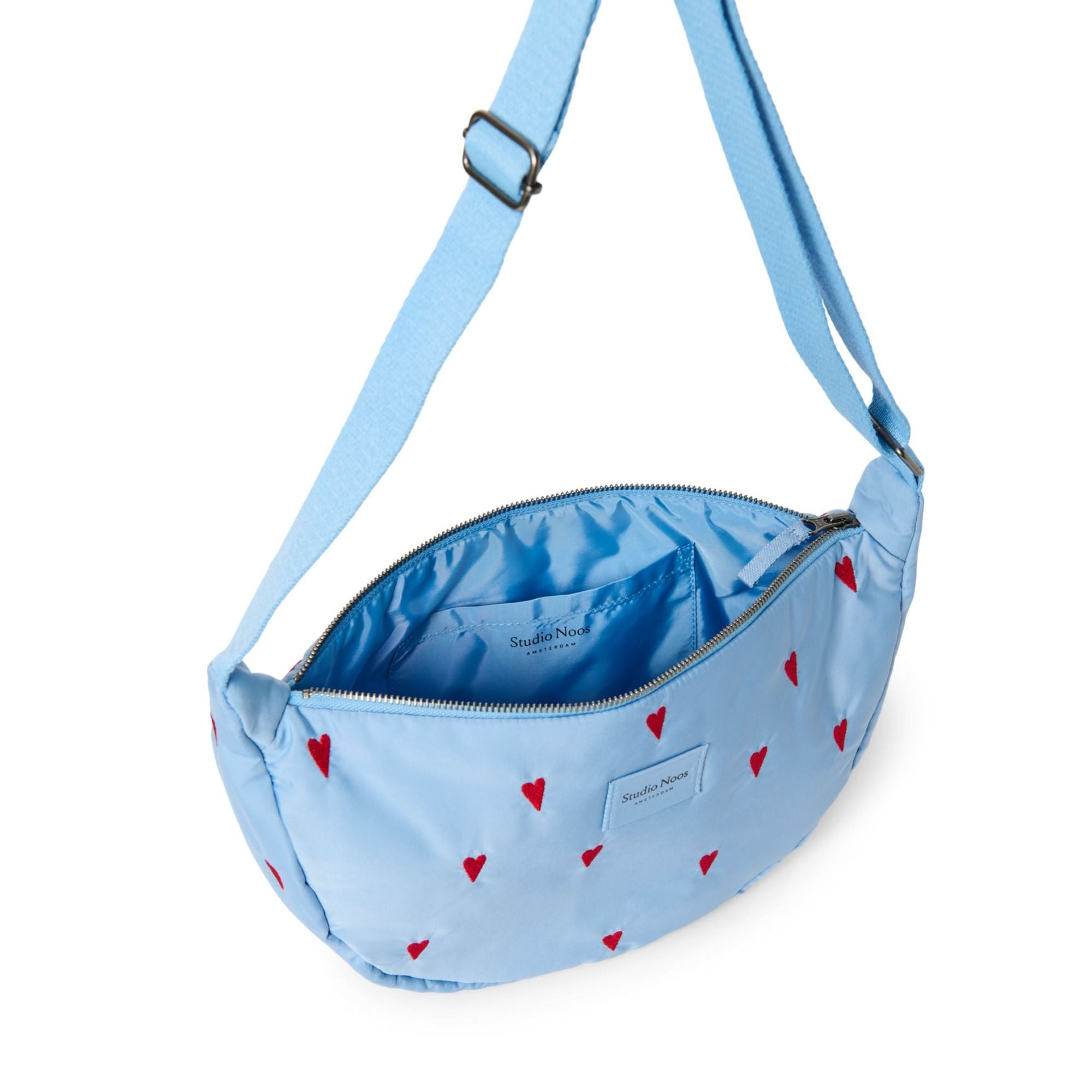 Die Umhängetaschen werden in einer Werkstatt in Holland von Hand hergestellt. Das Besondere an der Produktion ist, dass das Label mit einer Stiftung zusammenarbeitet, die mit Menschen arbeitet, die normalerweise keine Chance auf dem Arbeitsmarkt hätten. Studio Noos gibt diesen Menschen die Chance, kreativ und eigeninitiativ die Marke komplett zu machen.