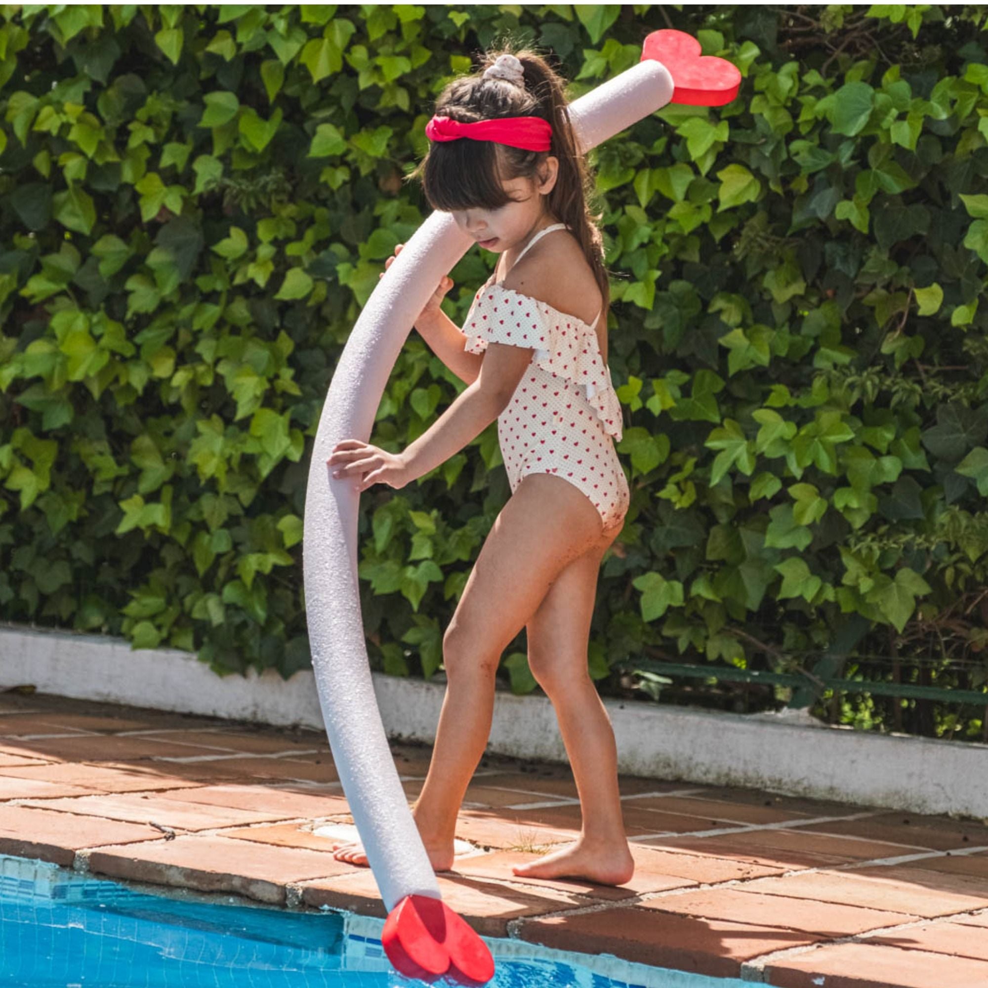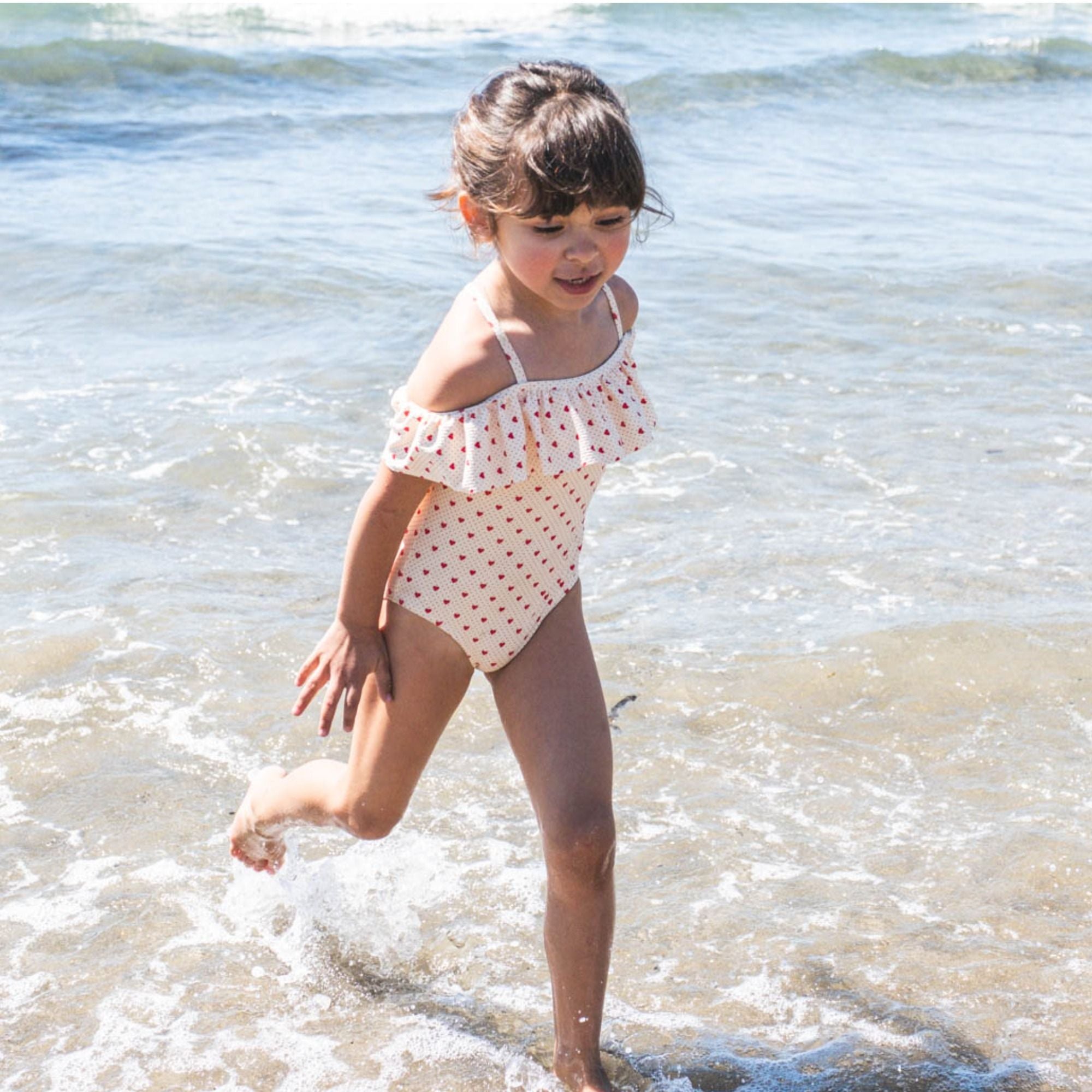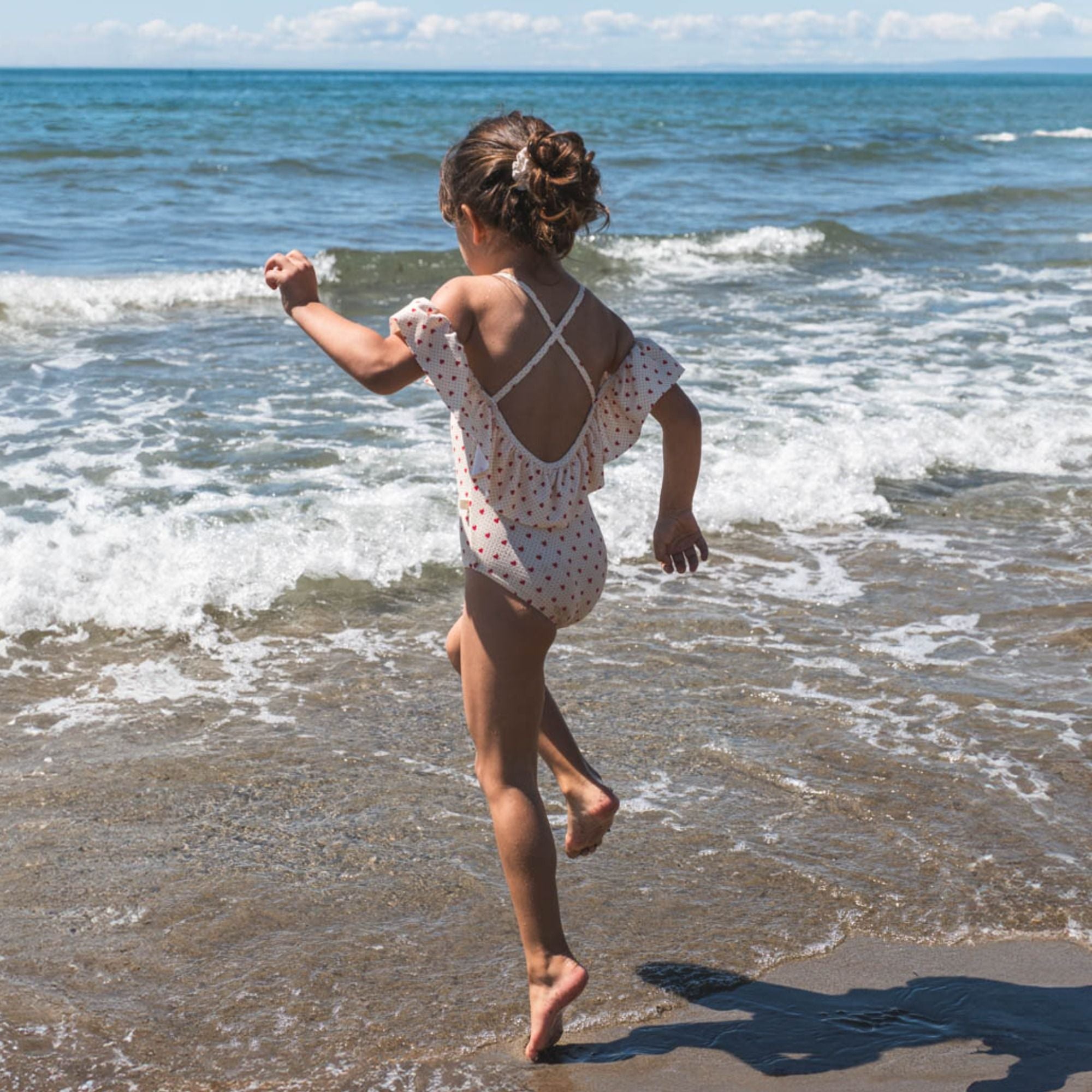 Ein hübscher Badeanzug für Mädchen mit Rüschendetails. Die Träger überkreuzen sich auf dem Rücken für einen niedlichen und verspielten Look. Der Stoff hat einen UV50+ Sonnenschutz, damit die Kleinen gut vor der Sonne geschützt sind. Das schnelltrocknende und atmungsaktive Material macht ihn zum Lieblingsstück für den Strand oder den Pool.