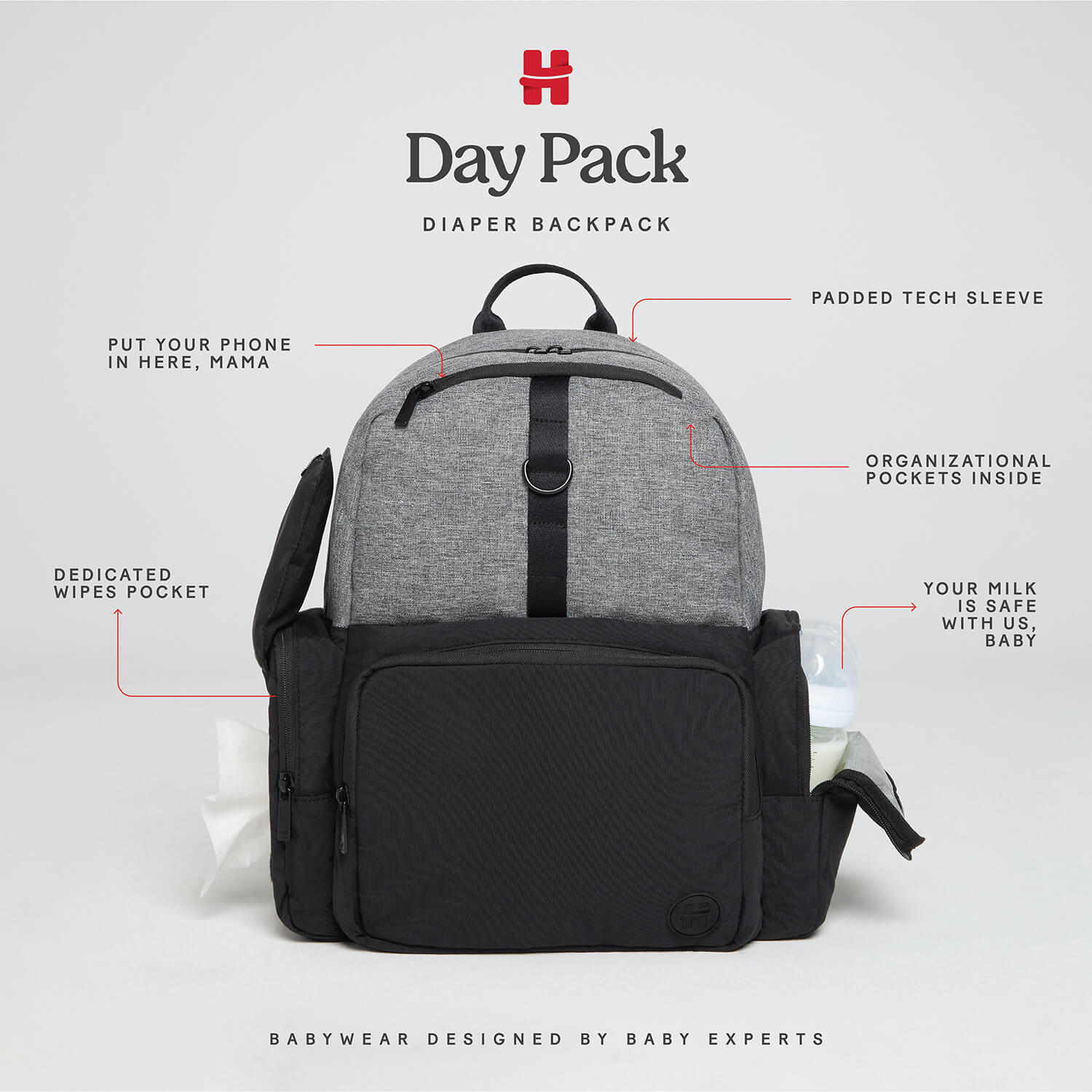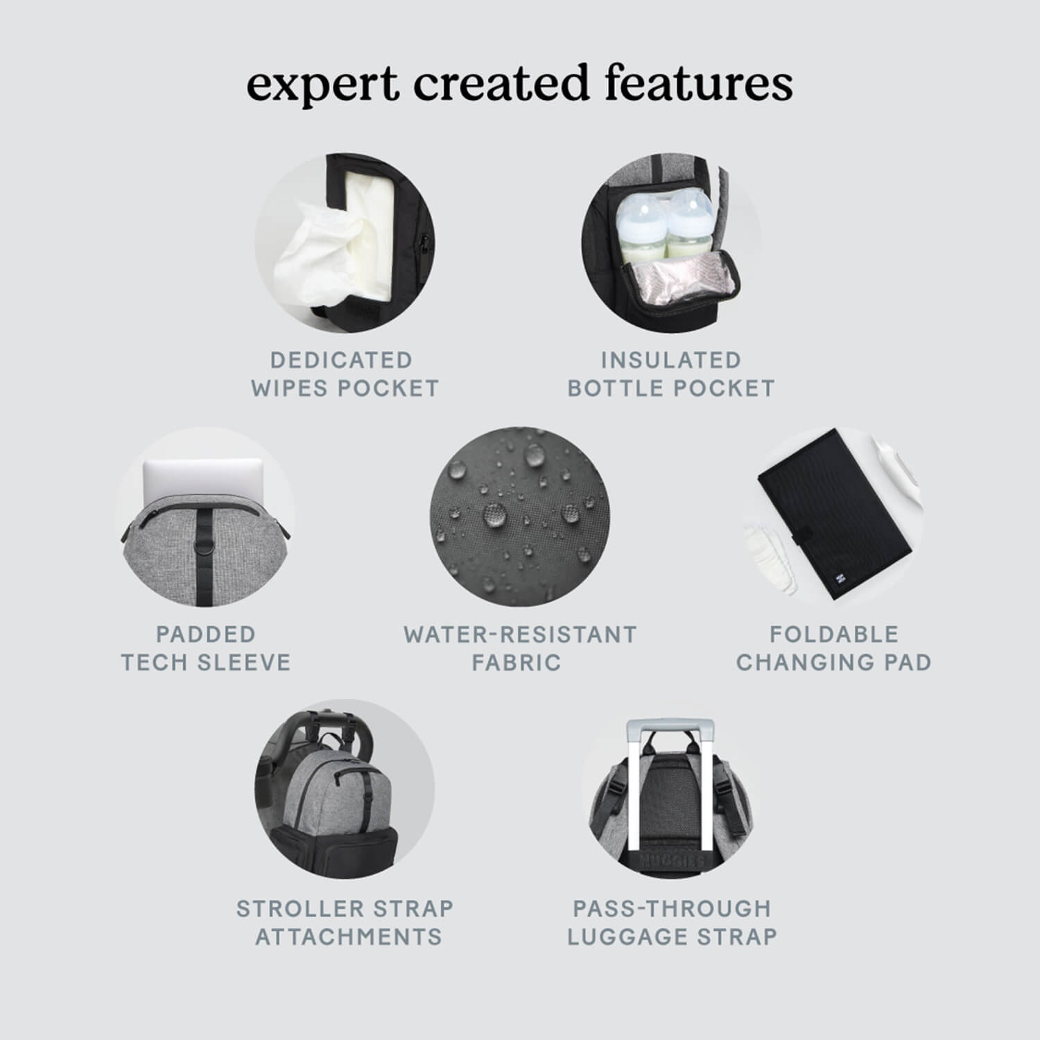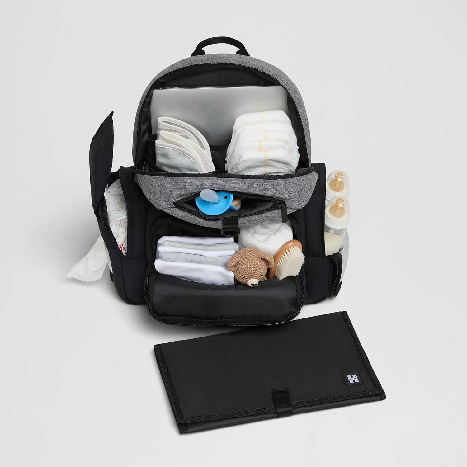 • Mit extra Fach für Feuchttücher und Windelbeutel