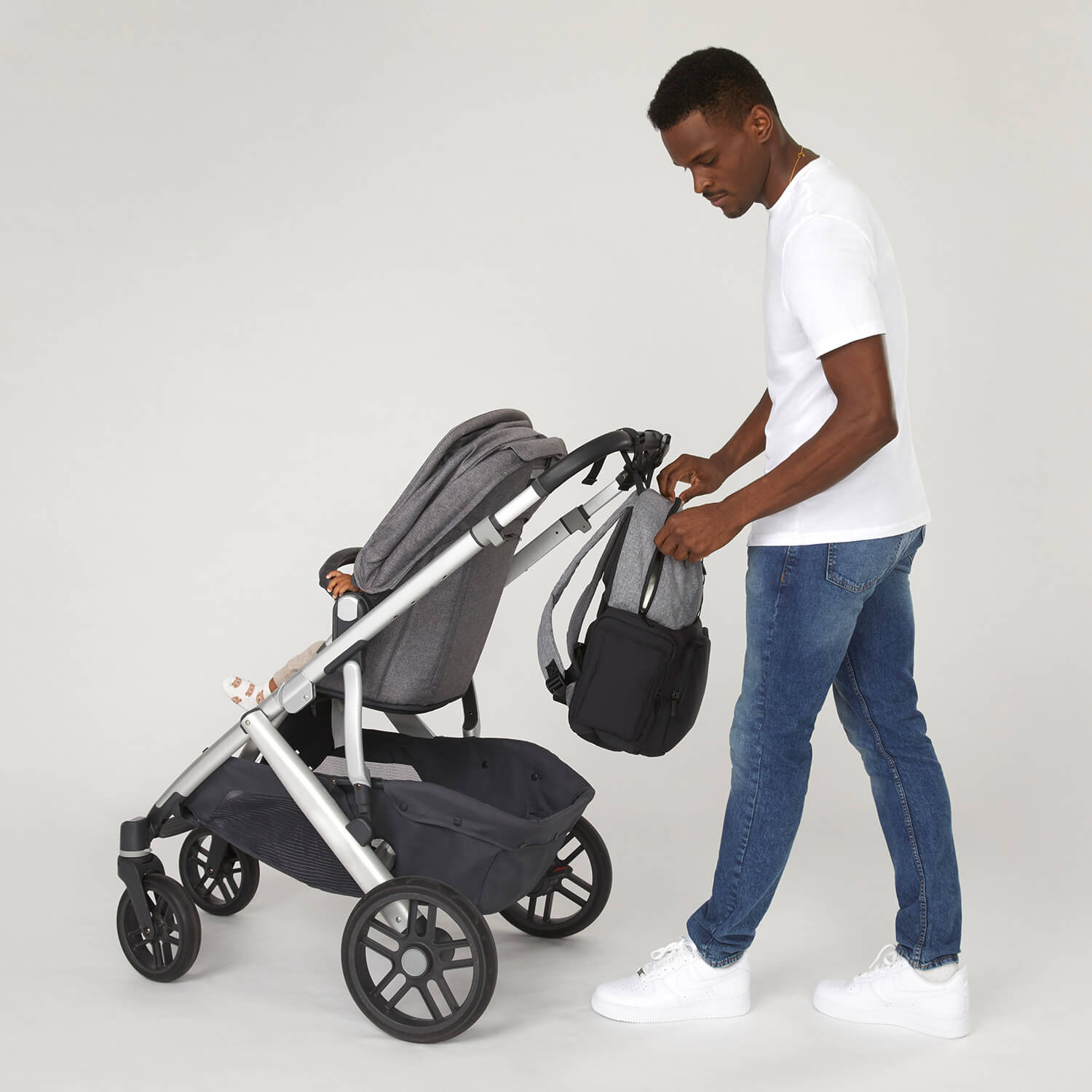 • Mit verstellbaren Träger und Schlaufen für die Befestigung am Kinderwagen