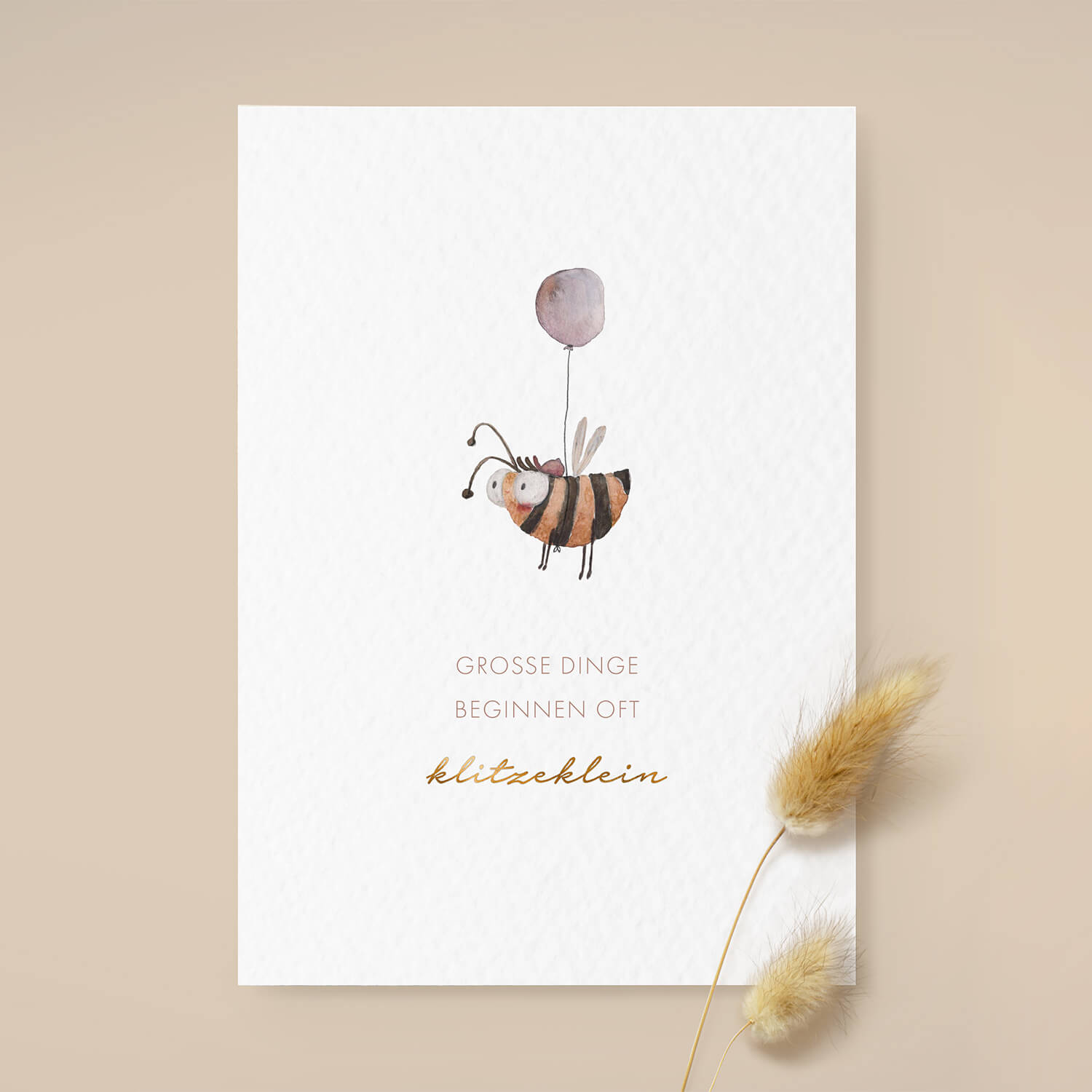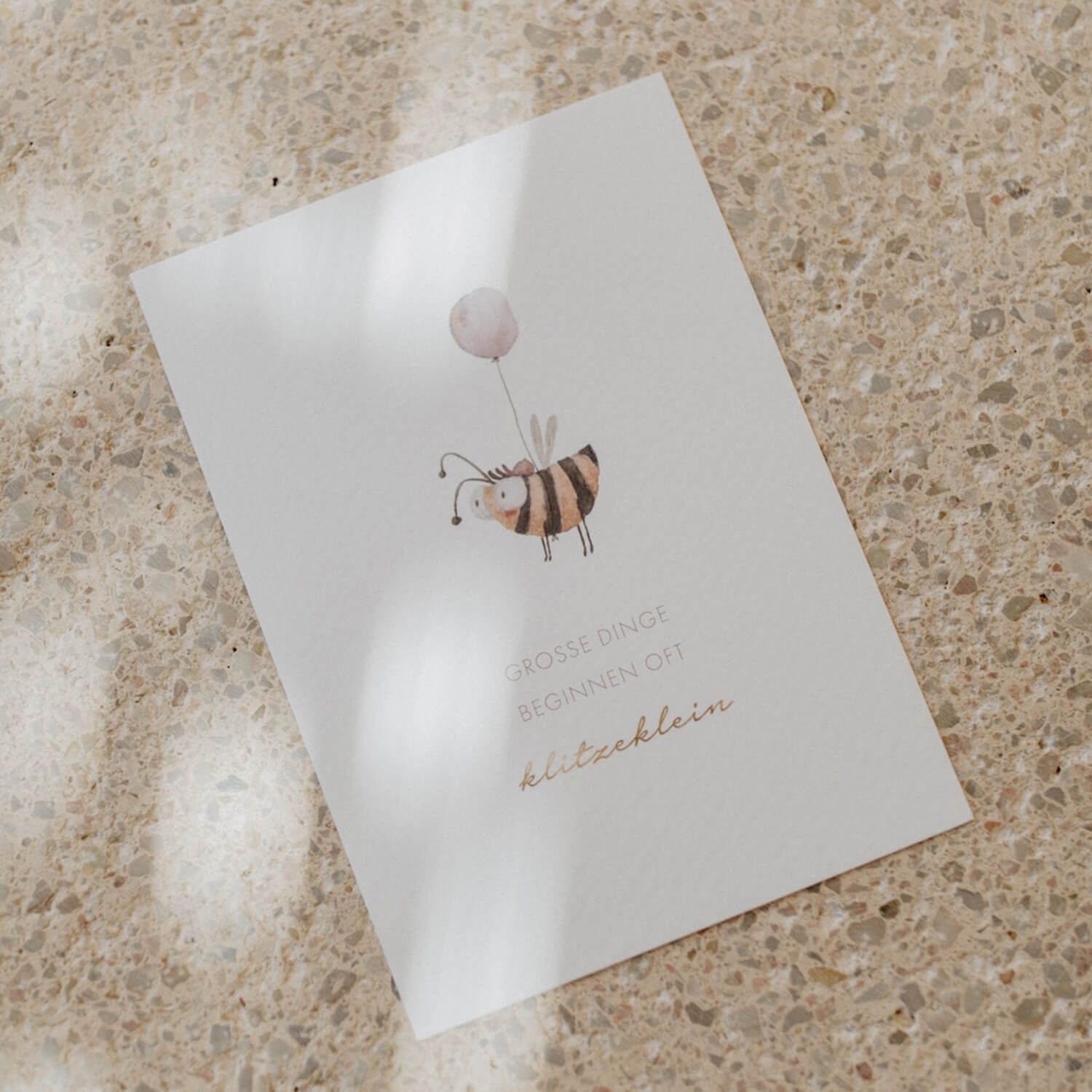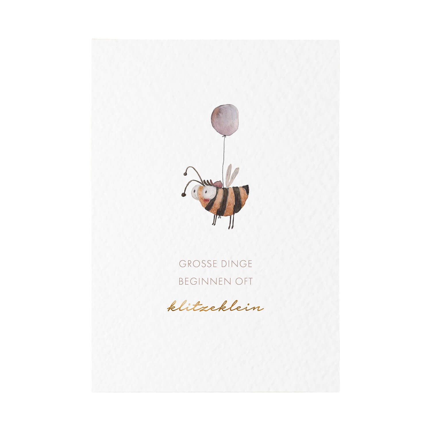 Unsere Postkarte 'Hummel klitzeklein' eignet sich sowohl als Karte zu einem Geburtsgeschenk als auch zu anderen Anlässen. Die handillustrierte Hummel macht die Karte wunderschön.
