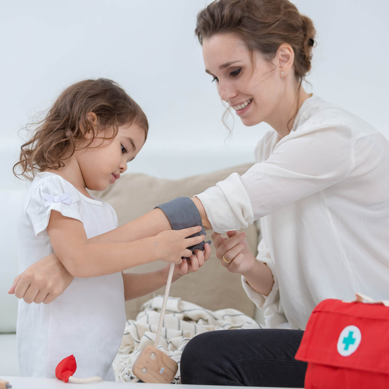 - Das Set enthält 5 grundlegende medizinische Geräte und einen praktischen Arztkoffer