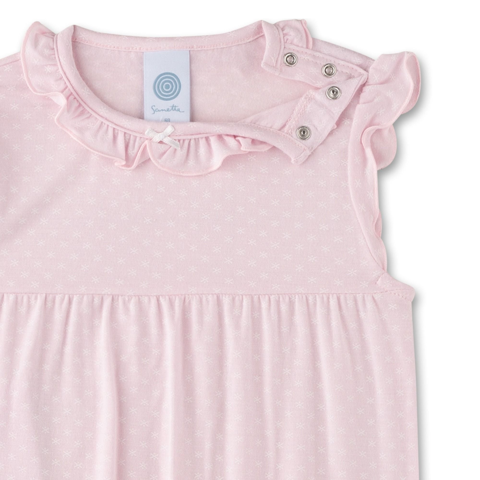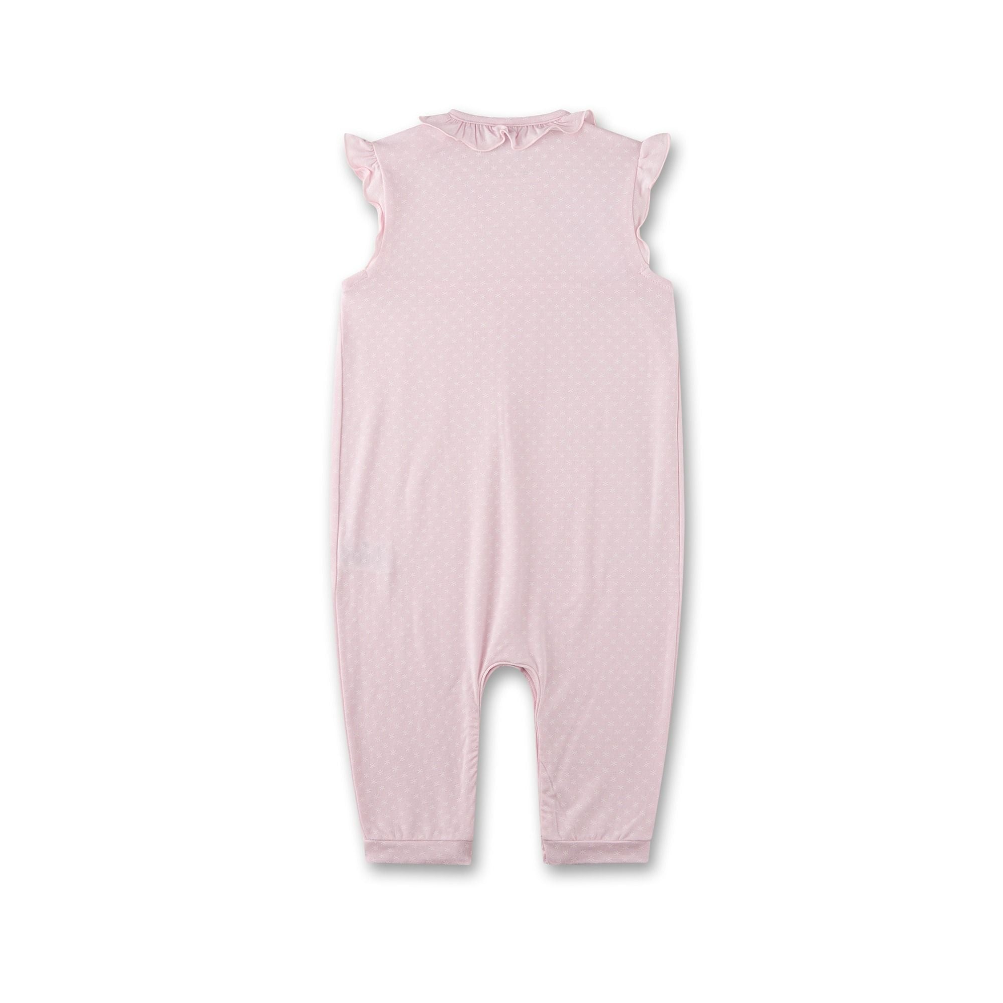 Dieser Overall ist aus hochwertigem, weichem Modal gefertigt, das für ein temperaturregulierendes Tragegefühl sorgt. Der praktische Druckknopfverschluss ermöglicht ein kinderleichtes An- und Ausziehen. Die kleinen Bündchen an den Füßen bieten ausreichend Platz und verhindern, dass der Pyjama hochrutscht. Der Overall ist mit zarten Rüschen am Kragen und an den Schultern versehen, die ihm einen besonders niedlichen Touch verleihen. Die weite Hose sorgt für zusätzlichen Komfort und Bewegungsfreiheit. Ideal für erholsame Nächte und gemütliche Tage!