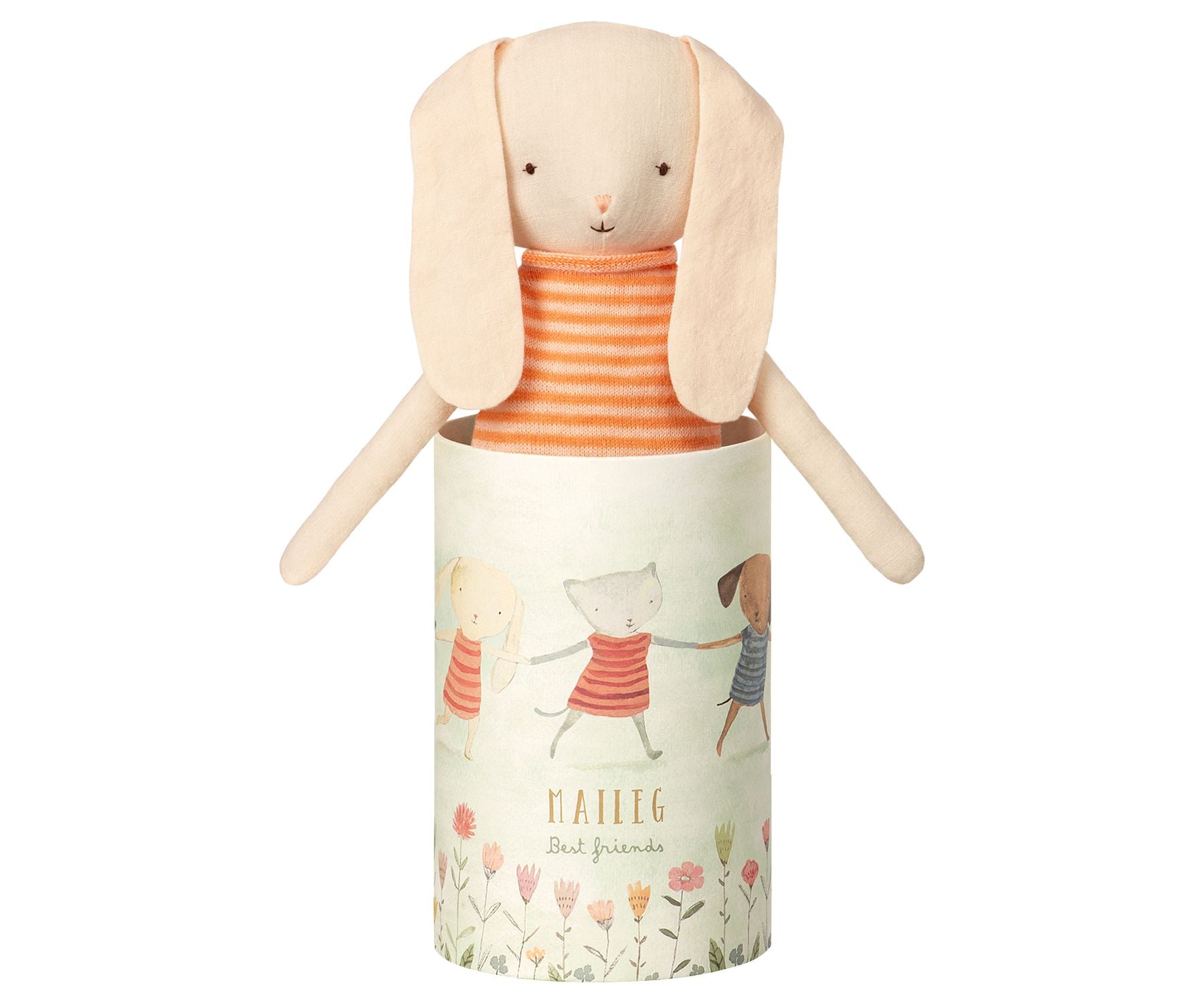 - Jeder Hase braucht einen besten Freund. Dieser Freund wird aus der schönen Geschenkbox hüpfen, um dich zu begrüßen. Er wird mit einem gestreiften, orangefarbenen Oberteil geliefert, aber du kannst die Garderobe mit zusätzlicher Best Friend Clothing erweitern. Passt zu romantischen Möbeln