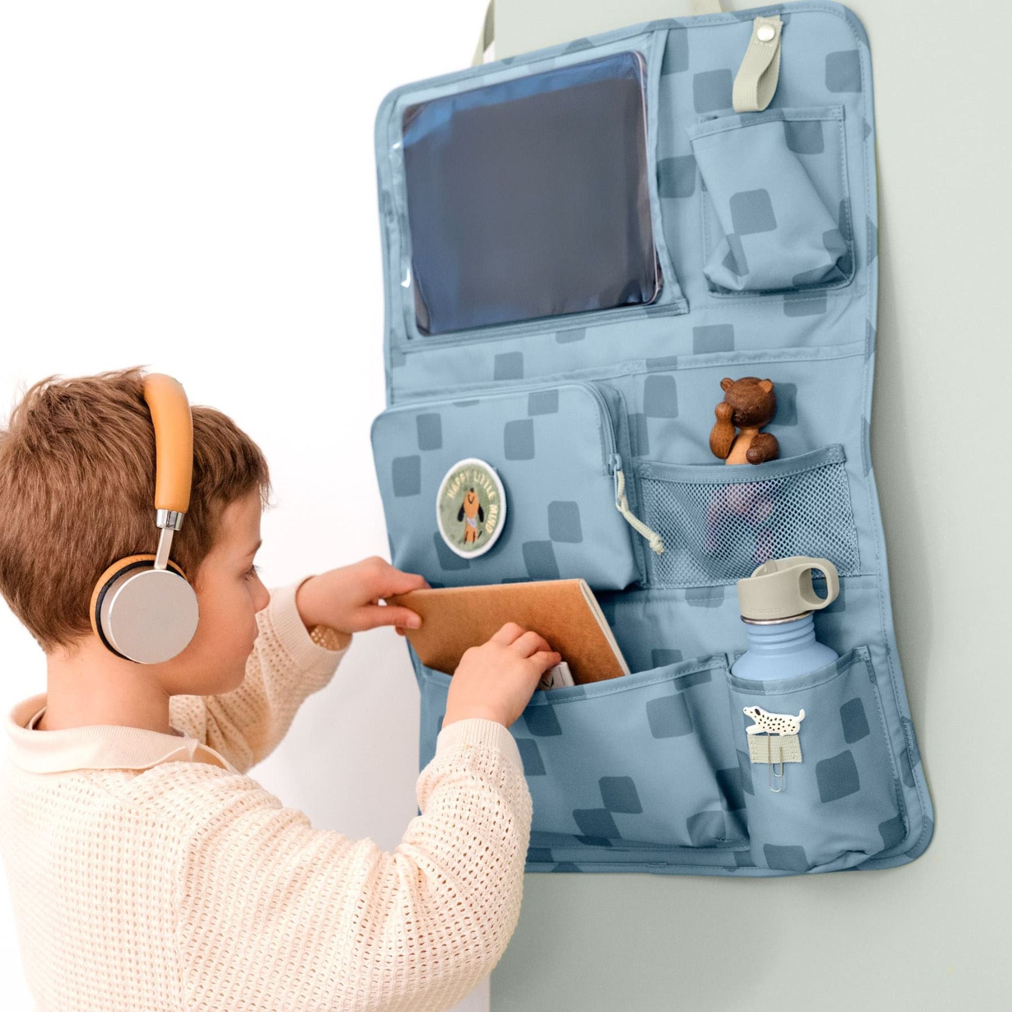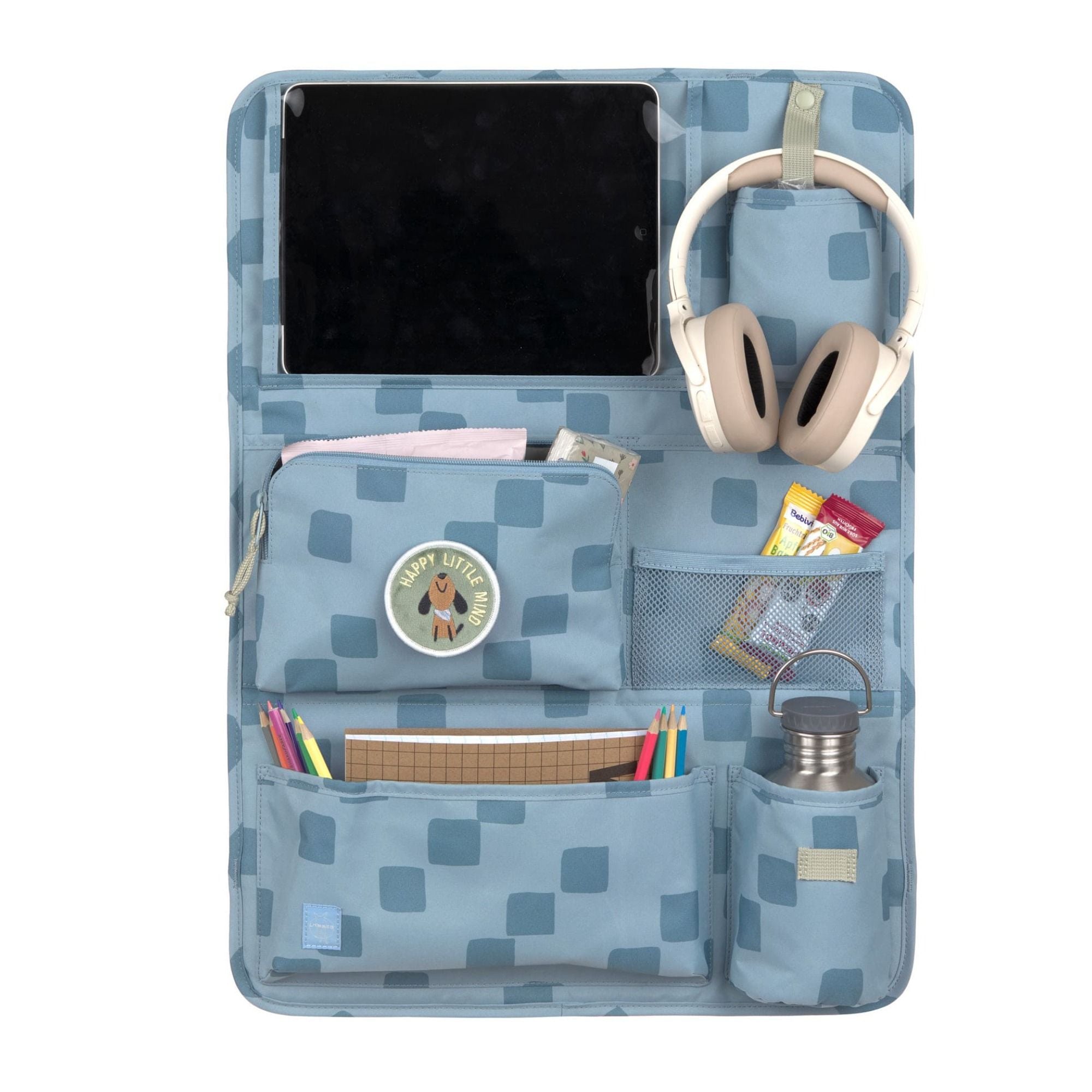 Der Autorücksitz-Organizer sorgt für stressfreie Autofahrten und bringt Ordnung ins Fahrzeug. Mit seiner einfachen Befestigung an der Rückenlehne ist er im Handumdrehen einsatzbereit. In zahlreichen clever gestalteten Staufächern mit Klett- und Reißverschlüssen finden Snacks, Kuscheltiere und die Trinkflasche jederzeit ihren Platz und sind für Kinder gut erreichbar. Ein extragroßes Fach mit Sichtfenster bietet Raum für ein Tablet, während eine praktische Schlaufe Kopfhörer griffbereit hält. Hergestellt aus wasserabweisendem, leicht abwaschbarem Material überzeugt der Organizer durch Funktionalität und Alltagstauglichkeit. Die fröhlichen Farben und Muster machen ihn zu einem echten Hingucker. Individuelle Gestaltungsmöglichkeiten bietet ein austauschbares Patch-System – ein farbenfroher Patch ist bereits im Lieferumfang enthalten.