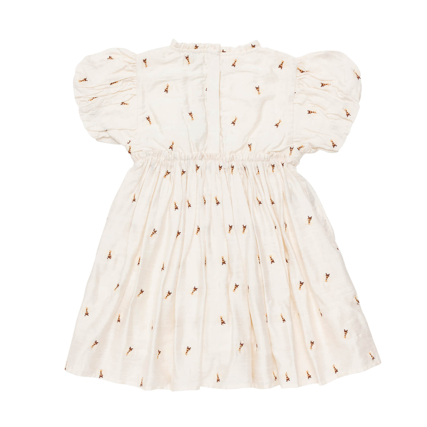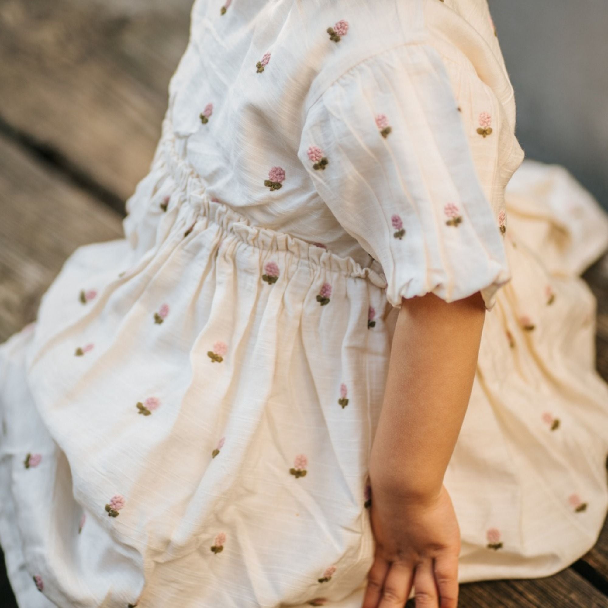 Dieses perfekte Sommerkleid bietet Stil und Charme für lange, sonnige Tage im Freien. Es ist mit verdeckten Druckknöpfen am Rücken, elastischen Ärmelabschlüssen und Taille sowie gestickten Verzierungen gestaltet.