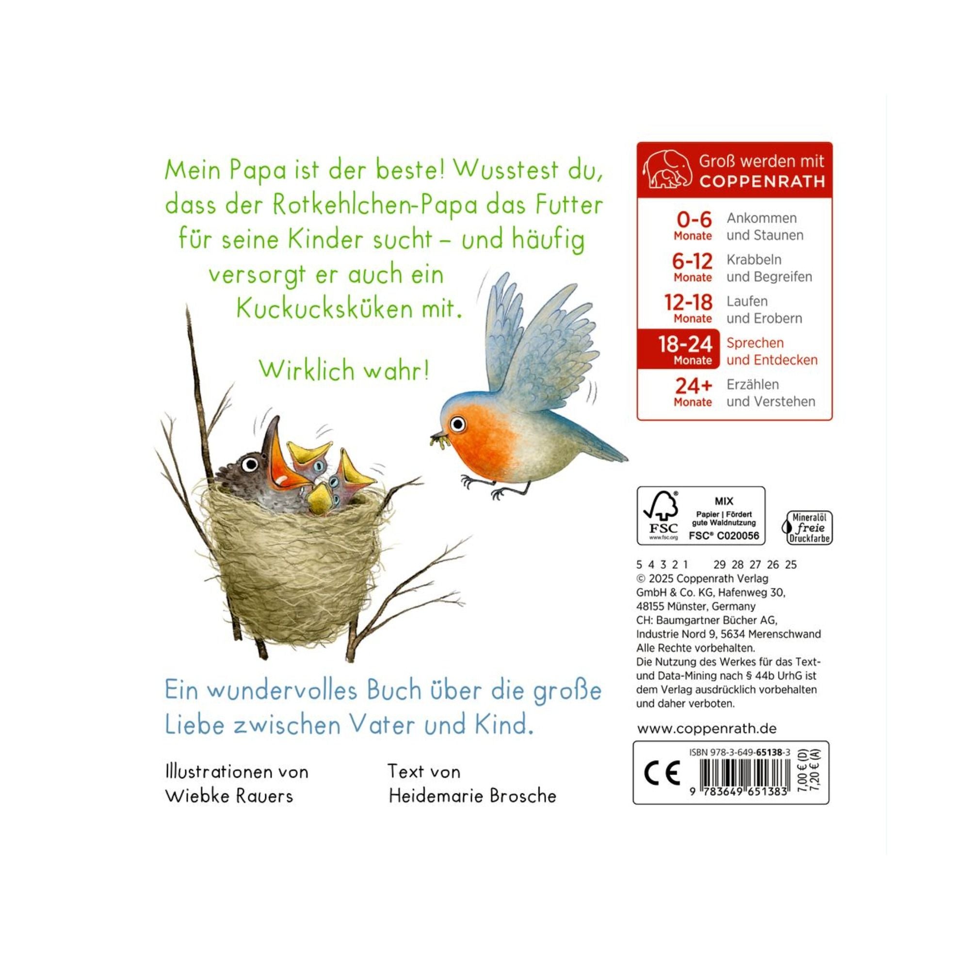 Mein Papa ist der beste! Wusstest du, dass der Rotkehlchen-Papa das Futter für seine Kinder sucht - und manchmal versorgt er direkt noch ein Kuckucksküken mit. Wirklich wahr! Ein wundervolles Buch über die große Liebe zwischen Vater und Kind.