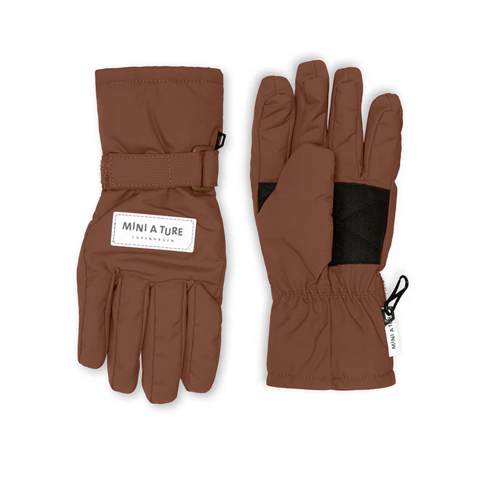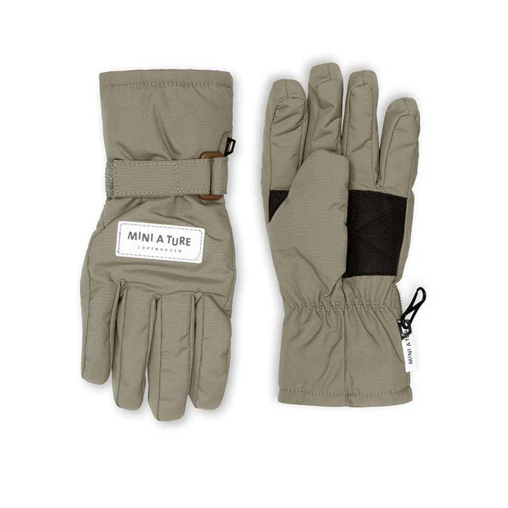 Klassische Handschuhe von MINI A TURE aus recyceltem Nylon. Wind- und wasserdicht, atmungsaktiv und warm genug für einen sehr kalten Winter. Die Handschuhe haben eine Verstärkung in der Handfläche und einen Gummizug am Handgelenk, was für eine gute Passform sorgt und Schnee und Regen abhält. Reflektierendes MINI A TURE-Logo auf dem Handrücken für zusätzliche Sichtbarkeit in den dunklen Monaten.