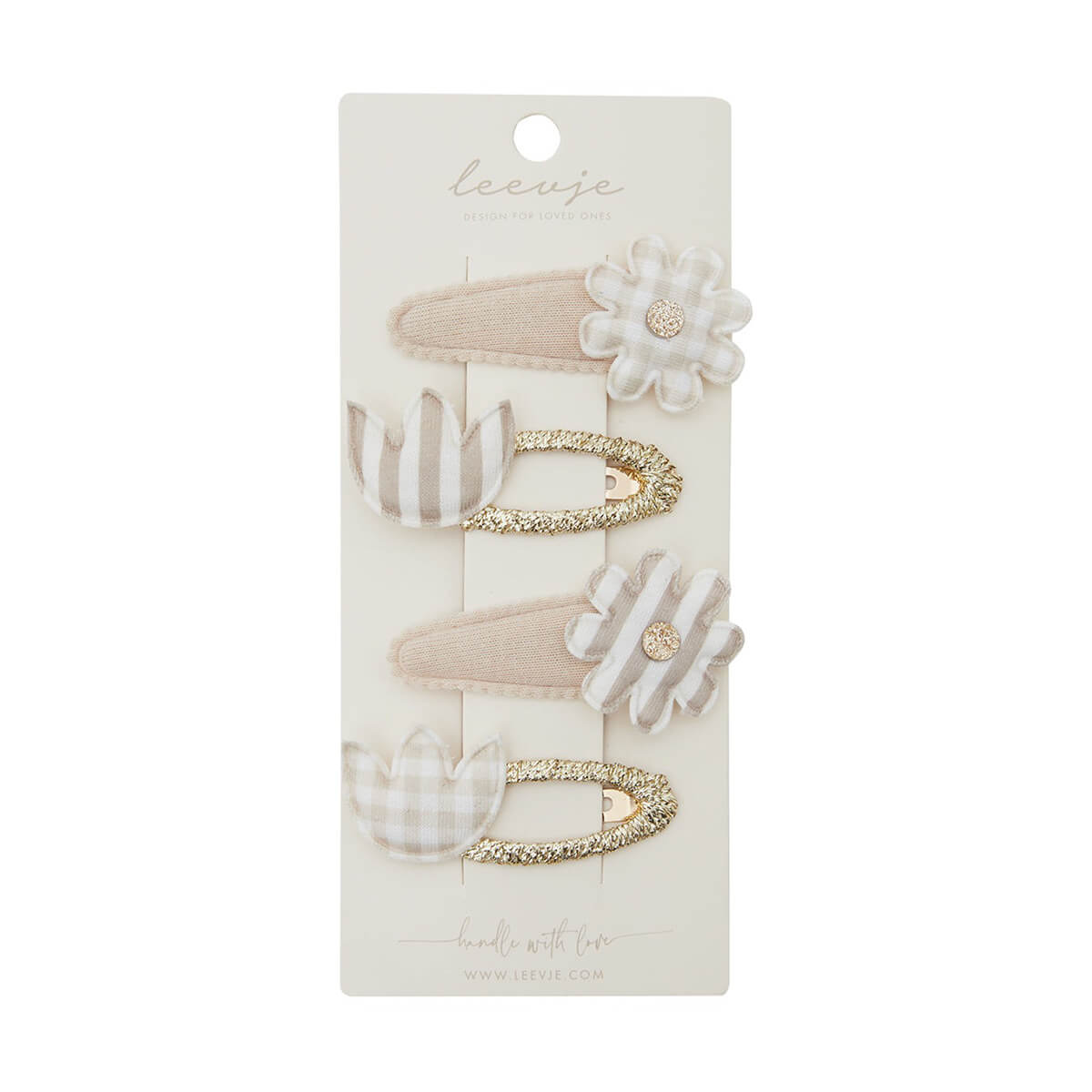 Diese süßen Haarspangen im Frühlingsdesign mit glitzernden Details lassen Kinderaugen strahlen. Durch die schlichten leevje-Farben passen sie toll zu jedem Outfit. Schöner Haarschmuck für jeden Tag!